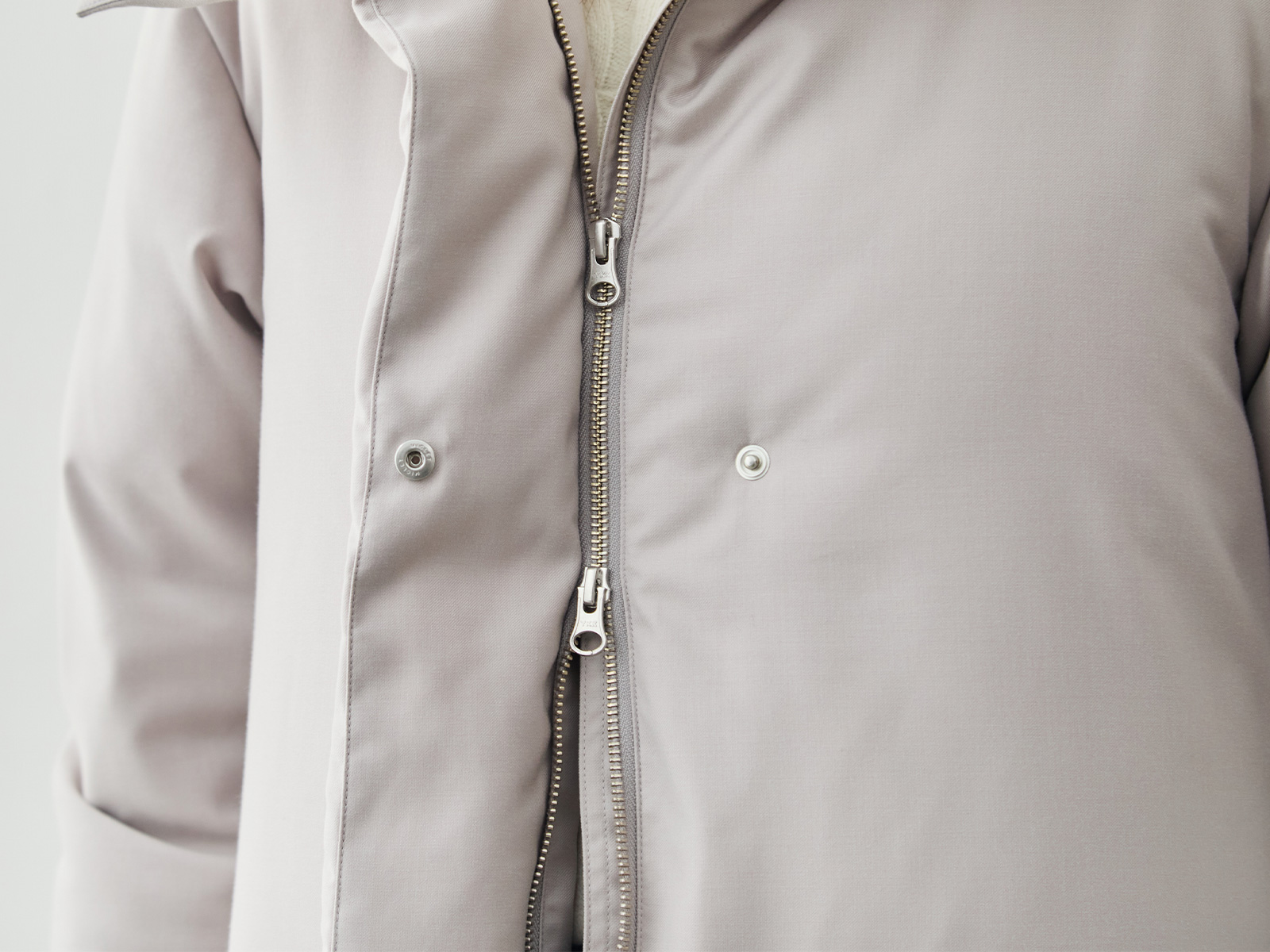 前タテは二重になっていてジッパーの隙間から入ってくる冷気をブロック&デザイン的にもジッパーが隠れることでカジュアルさを軽減しています。