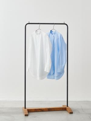 襟の先をやわらかく丸めたバンドカラーが、このシャツのさりげない個性。