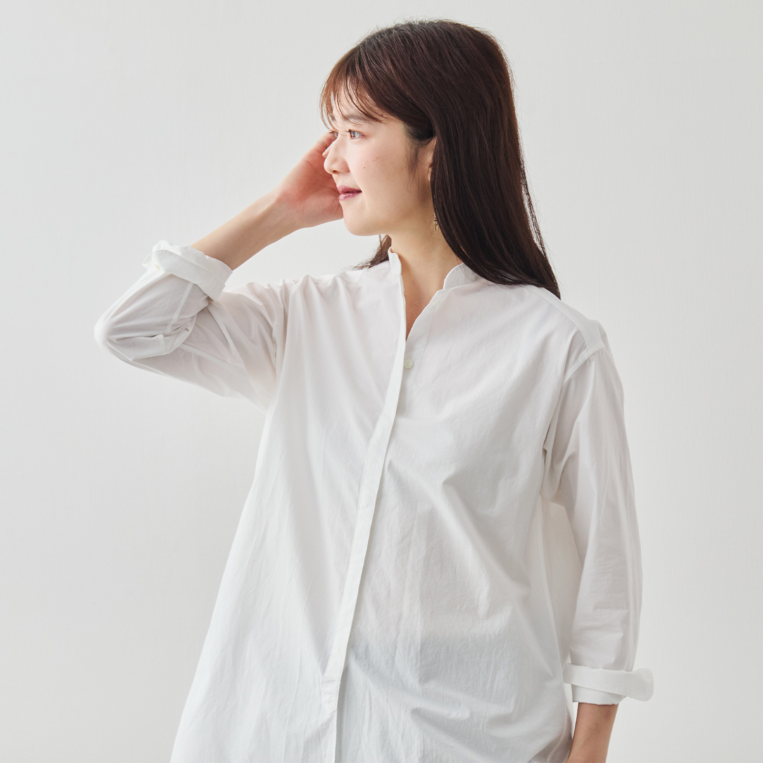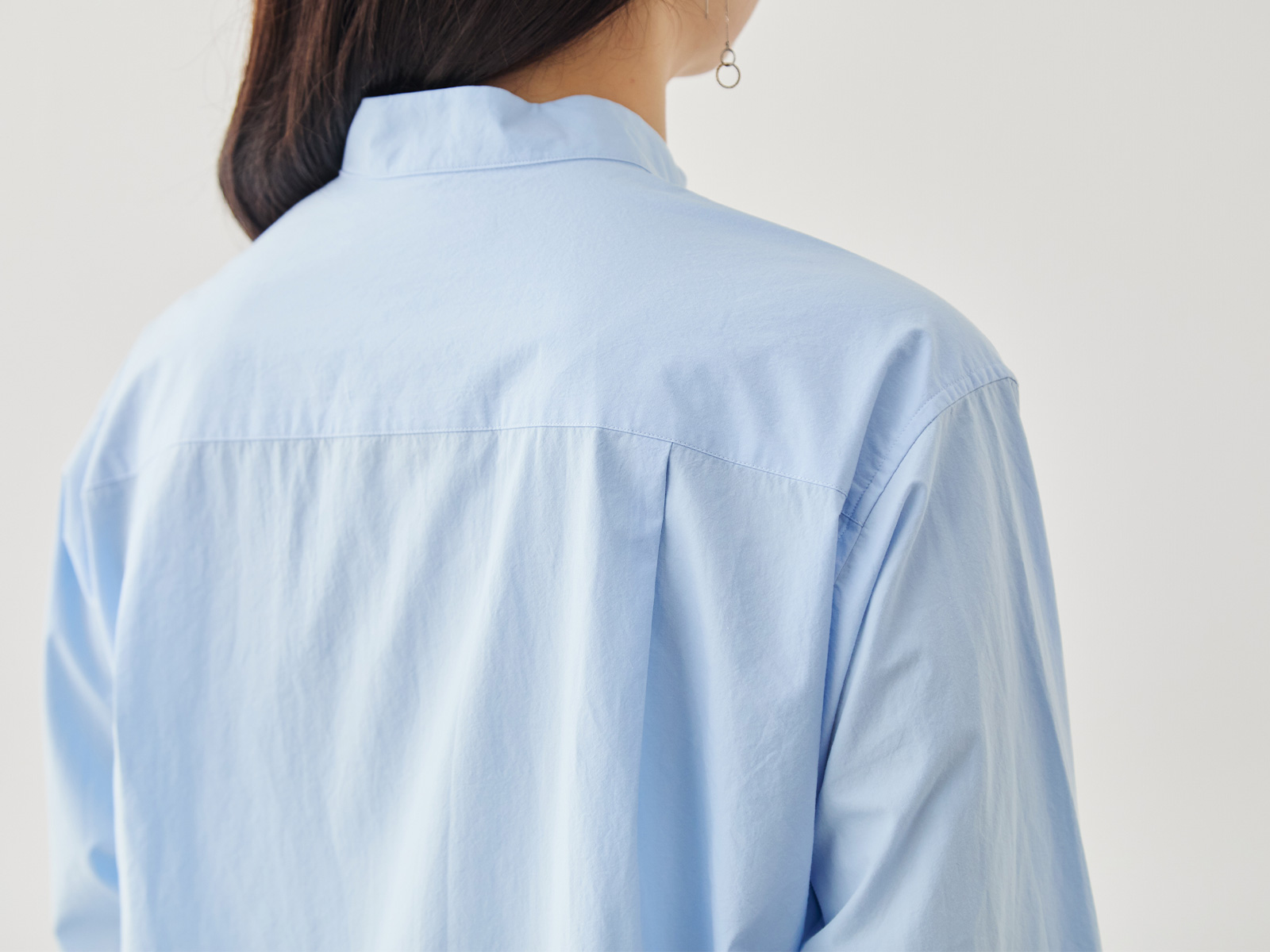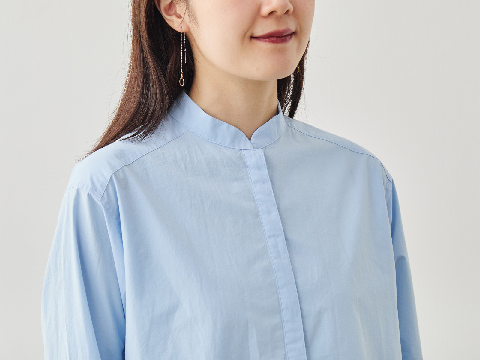 大人の女性に似合う、やわらかな印象を纏ったバンドカラー。