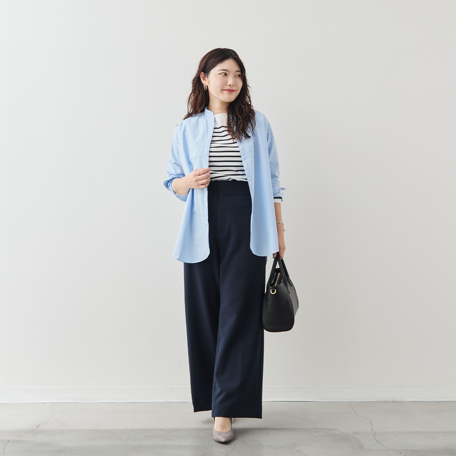 ホワイトはクリーンで軽やかに、サックスは清楚で爽やかに。どちらの色も合わせるボトムスを選ばず、どんな日にも頼れる“ワードローブの定番”です。