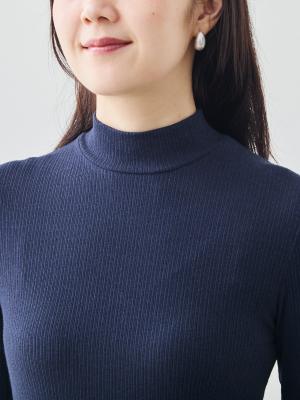 絶妙な高さのモックネックは、首元をほっそりと見せながら、重ね着のインナーとしても抜群の相性を発揮します。
