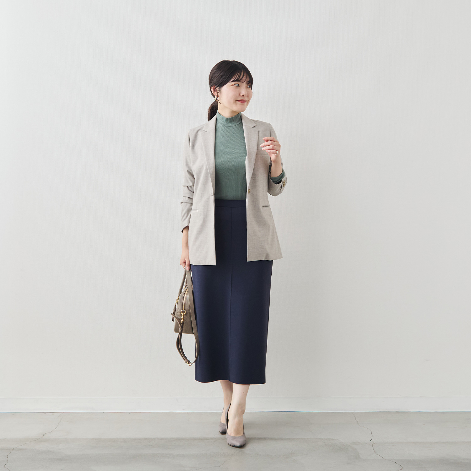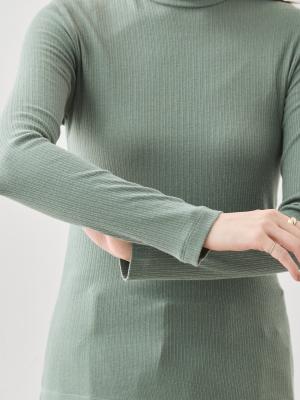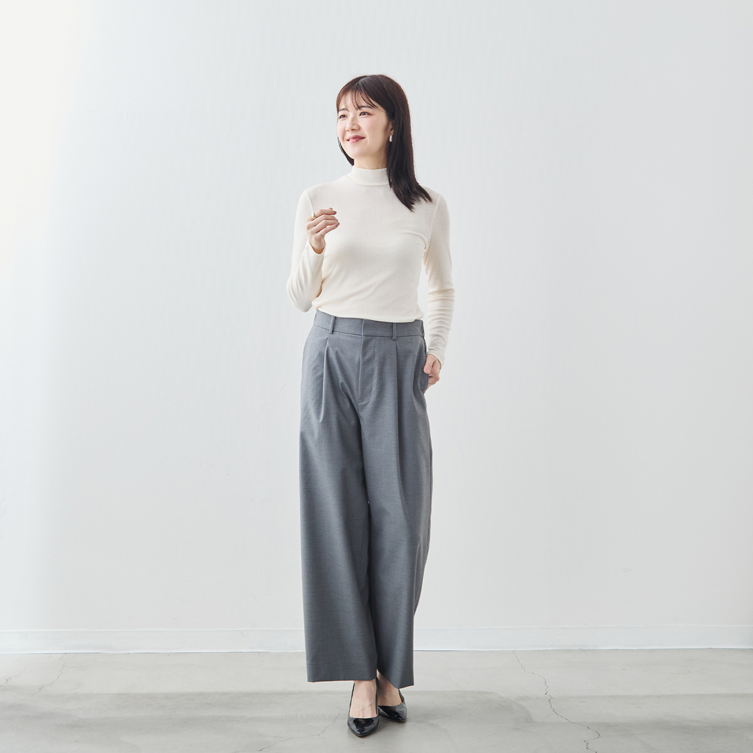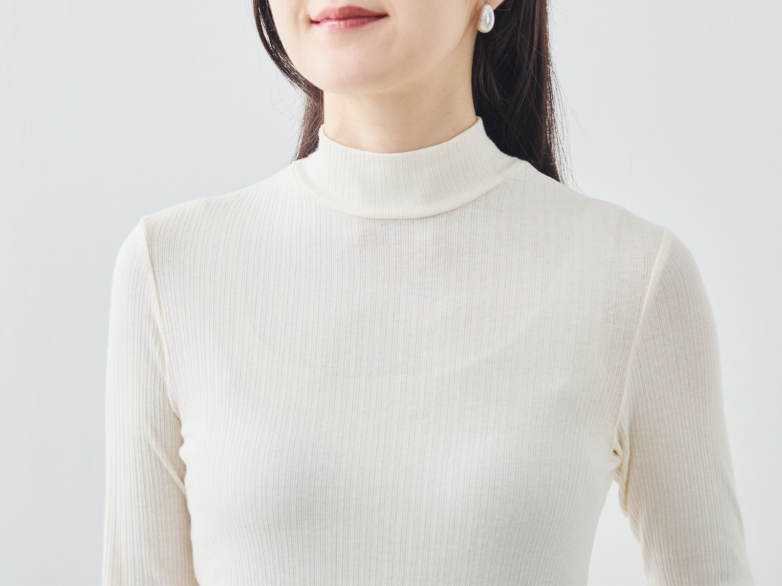 絶妙な高さのモックネックは、首元をほっそりと見せながら、重ね着のインナーとしても抜群の相性を発揮します。