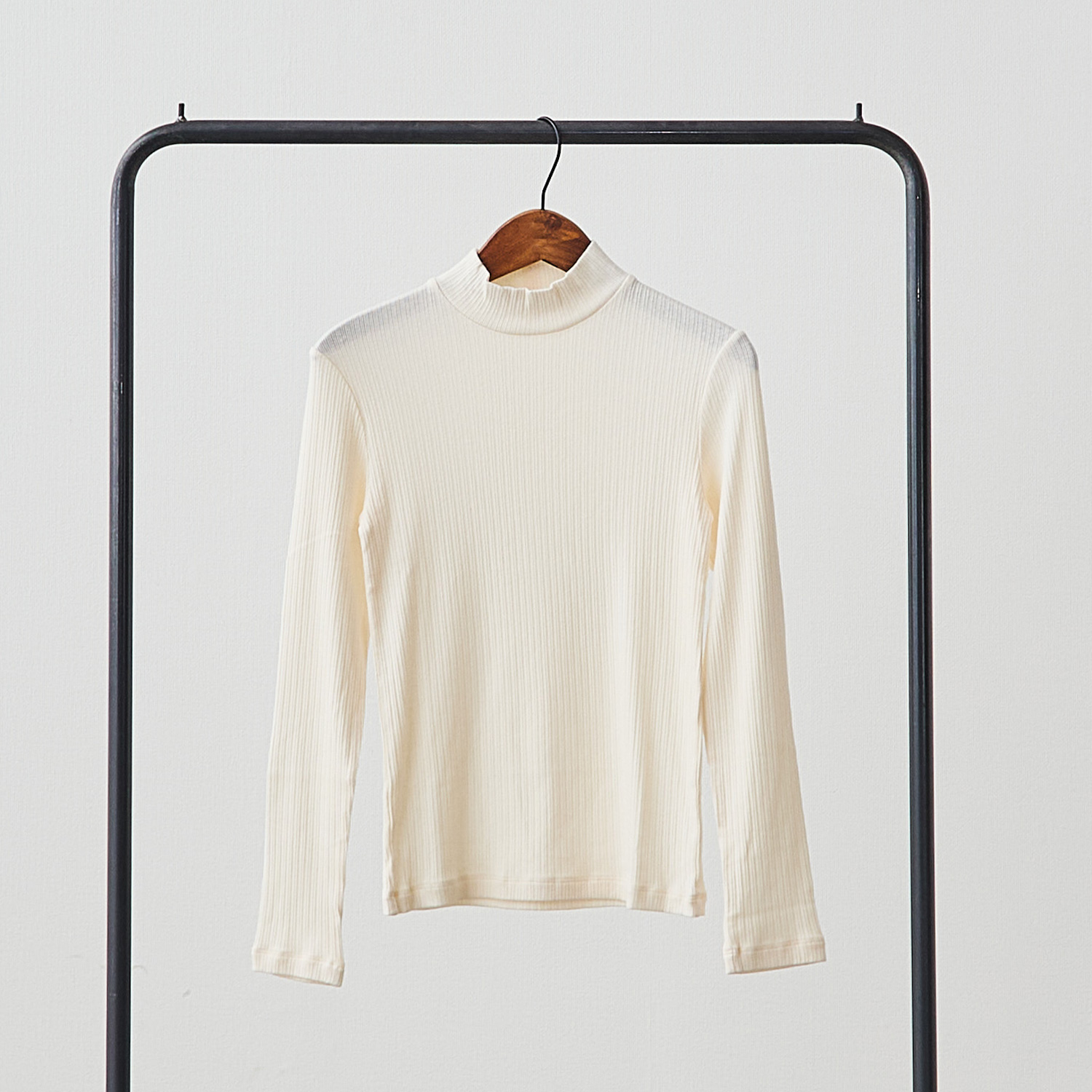 ジャケットやカーディガンの襟元から覗いたときのバランスも絶妙。タートルよりも長い季節活躍します。