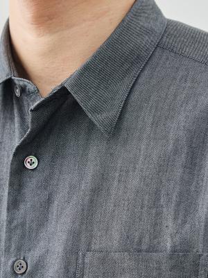 天然の貝ボタンが放つ光沢の美しさが、シャツを上品な印象に。