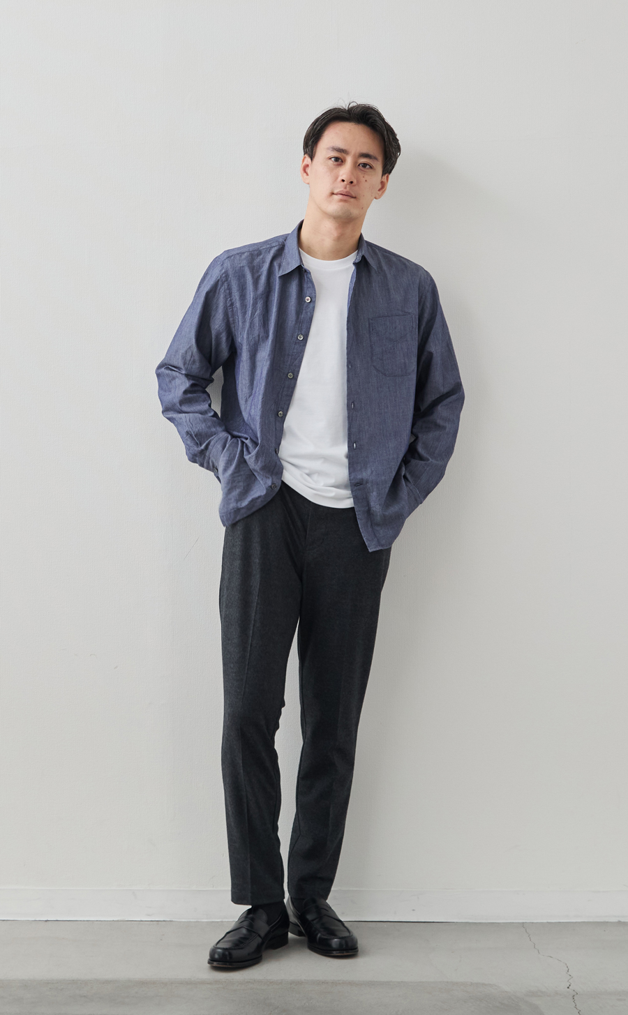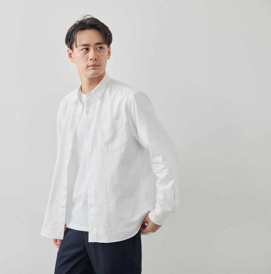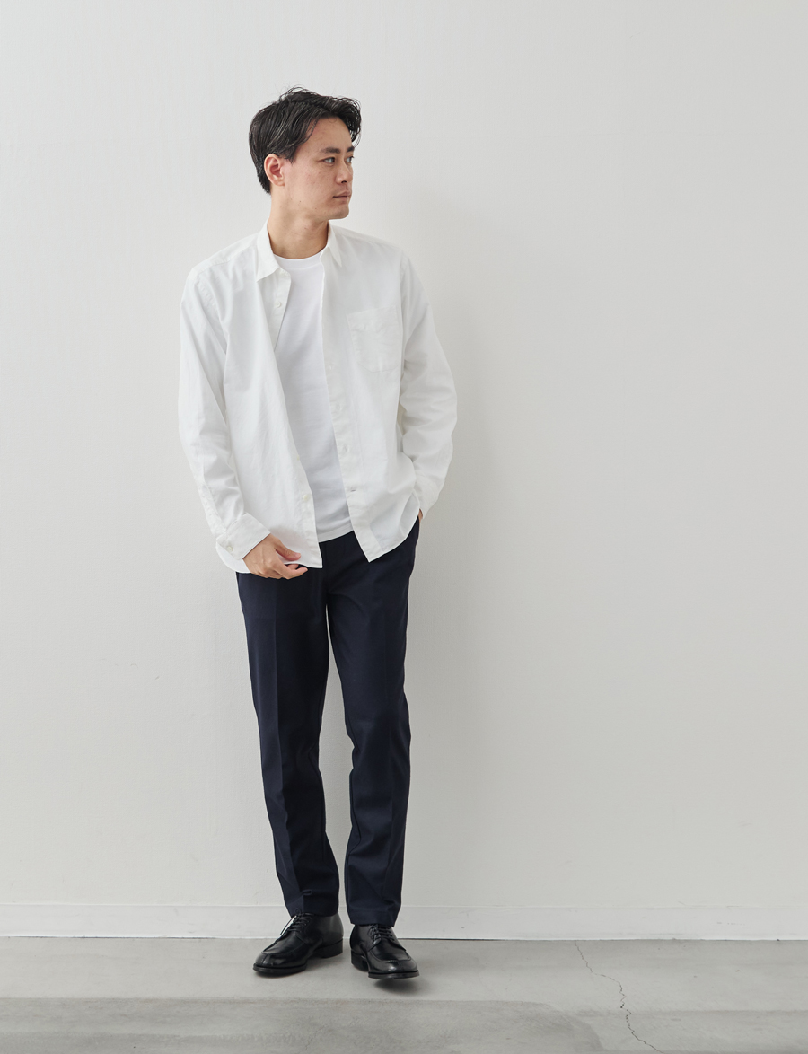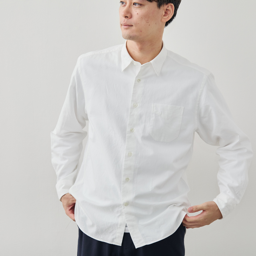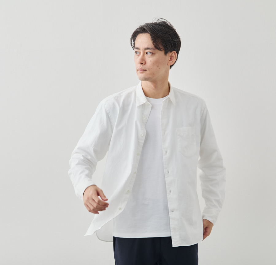 ファクトリエのドレスシャツは国内外74の有名ブランドのオーダーを受ける「HITOYOSHI」。熊本県人吉市に本社工場を構え25年。様々なオーダーによって蓄積された縫製仕様、それに柔軟に対応する熟練された縫製技術。日本人の体型にフィットしたタイトなシルエットでありながら、しっかりと運動量を加えたパターンメーキングが特徴です。