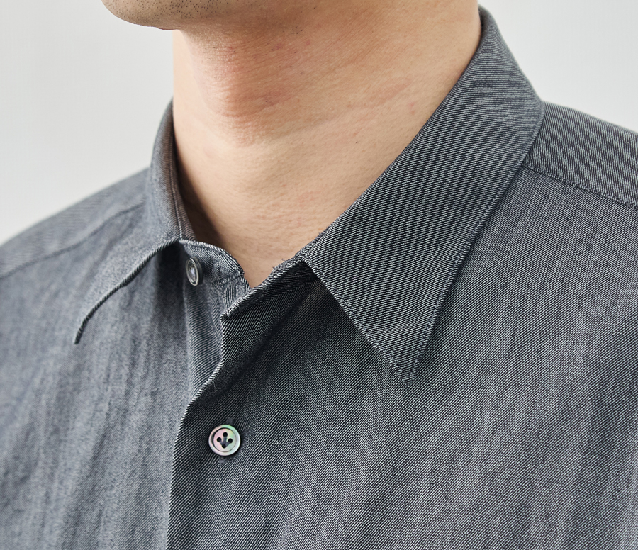 他にも、ボタンは鳥足付けにして片手で取れるようにするなど、各所に工夫を凝らしています。細かいところかもしれませんが、本物のシャツを着たいと思う方なら、着た感じで違いが分かるはずですよ。