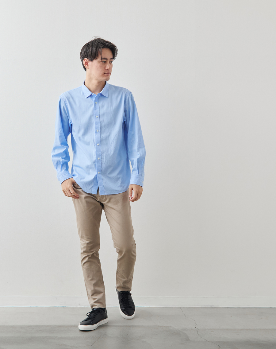 ファクトリエのドレスシャツは国内外74の有名ブランドのオーダーを受ける「HITOYOSHI」。熊本県人吉市に本社工場を構え25年。様々なオーダーによって蓄積された縫製仕様、それに柔軟に対応する熟練された縫製技術。日本人の体型にフィットしたタイトなシルエットでありながら、しっかりと運動量を加えたパターンメーキングが特徴です。