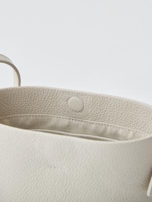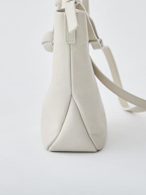 革そのものの自然なハリと厚みを活かし、安定感のある立体構造を実現。バッグ全体が優しく膨らむことで、収納力と美しいシルエットを両立しています。