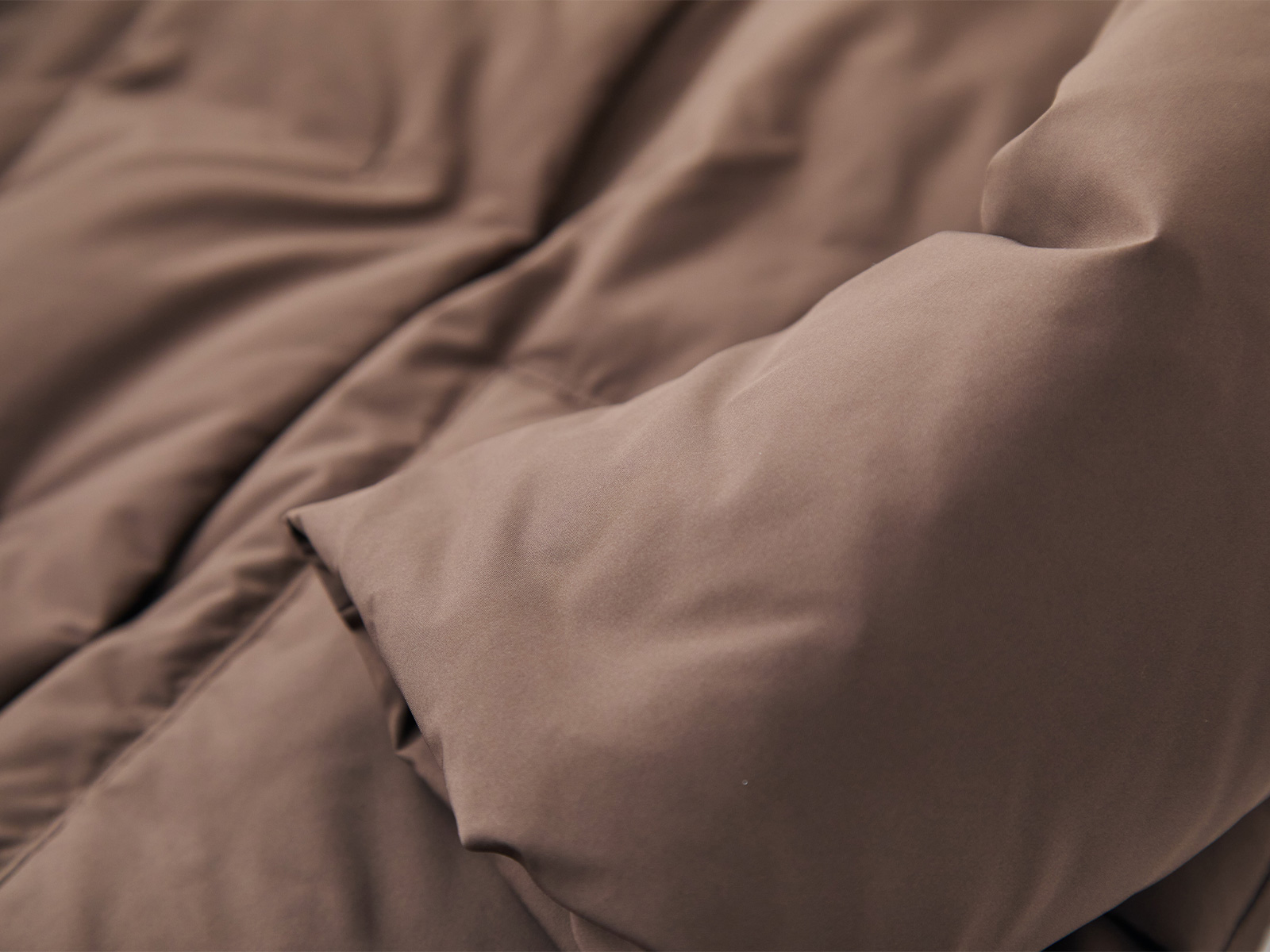 ダウンボールが大きく暖かい空気を多く含み、形崩れしにくいのが特徴です。この上質な羽毛を国内で再度洗浄し、塵や汚れを除去。軽量特殊高密度素材の中袋に充填する製法により、保温性を高めるとともに羽毛の飛び出しを防いでいるのもポイントです。ザンターが主に使用するダウンは、60年にわたり羽毛布団を製造してきた東洋羽毛工業株式会社が精製しています。