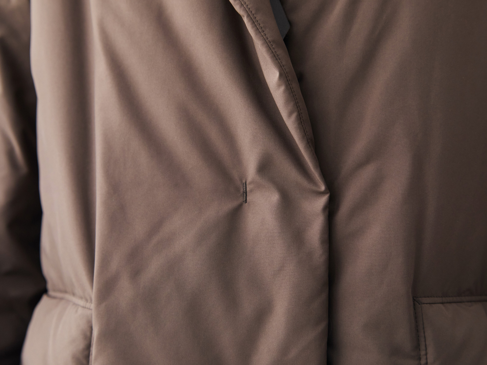 このダウンコートを手がけたのは、日本が誇る老舗ダウンメーカー「ザンター」。長年ザンターで経験を積んだ職人が1点ずつ丁寧に仕立てています。