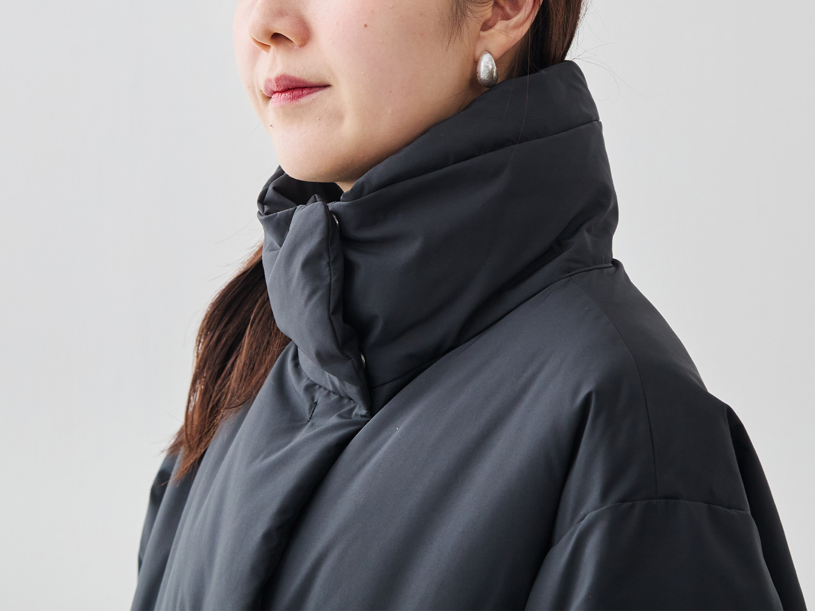 冷たい風が吹く日も安心の、立ち上がりのあるスタンドカラー。