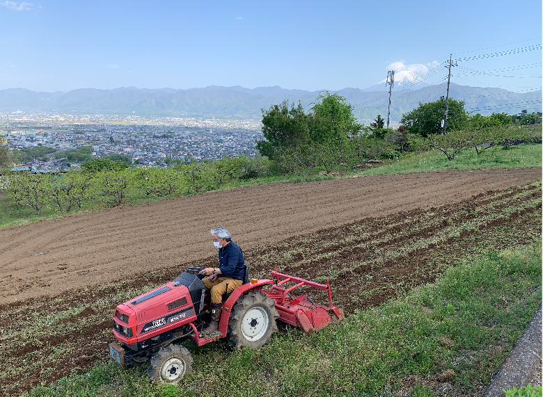 コットンプロジェクトでキモとなるみんなが集えるファクトリエファーム@山梨。今年のプロジェクトに向けて、いよいよ畑の土づくりが始まりました。青空に映えるトラクターで、土を掘り起こしていきます。ふっかふかになるまでこれから幾度も耕起し、タネがすくすくと育ってくれるための土壌を作っていきます。田中さん、今年もよろしくお願いいたします!