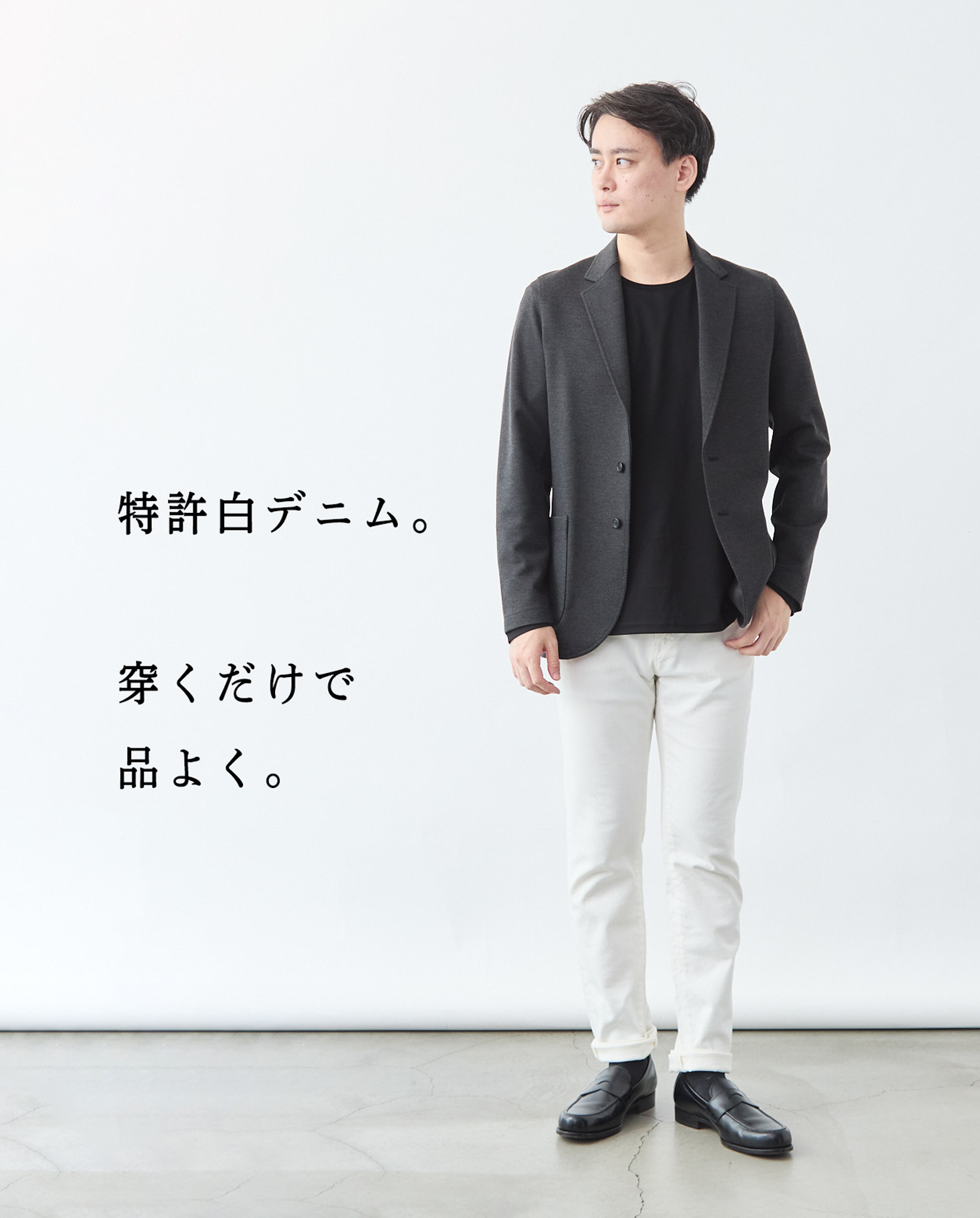 国産ジーンズの発祥地としても有名な岡山県児島の工場が作り上げた、この白デニム。