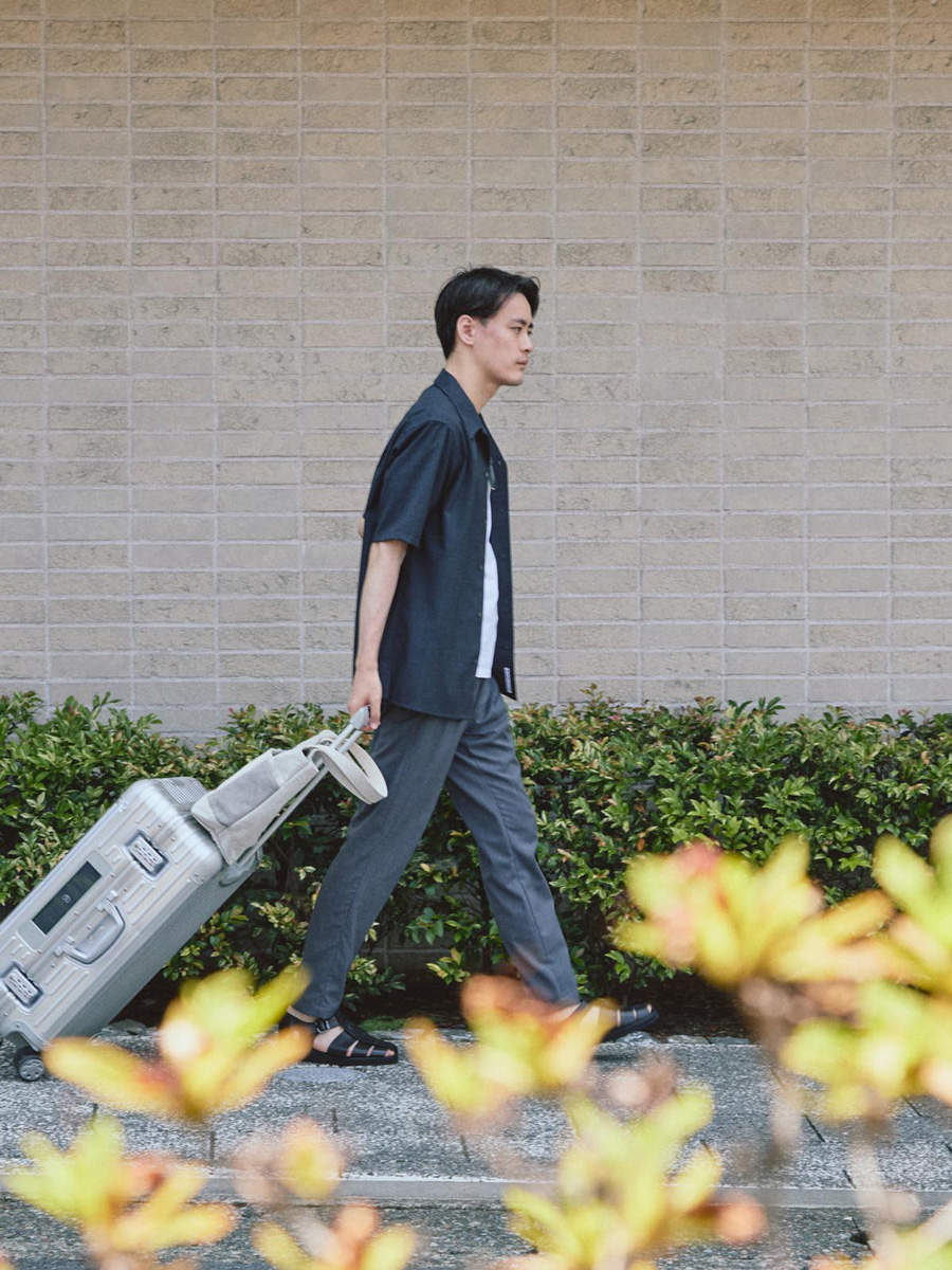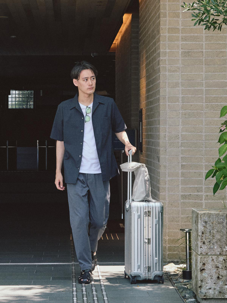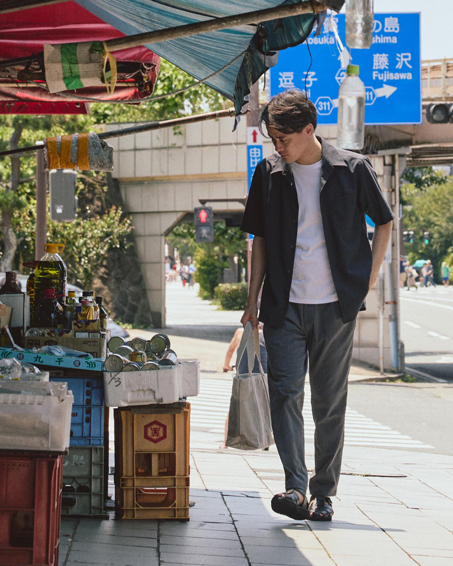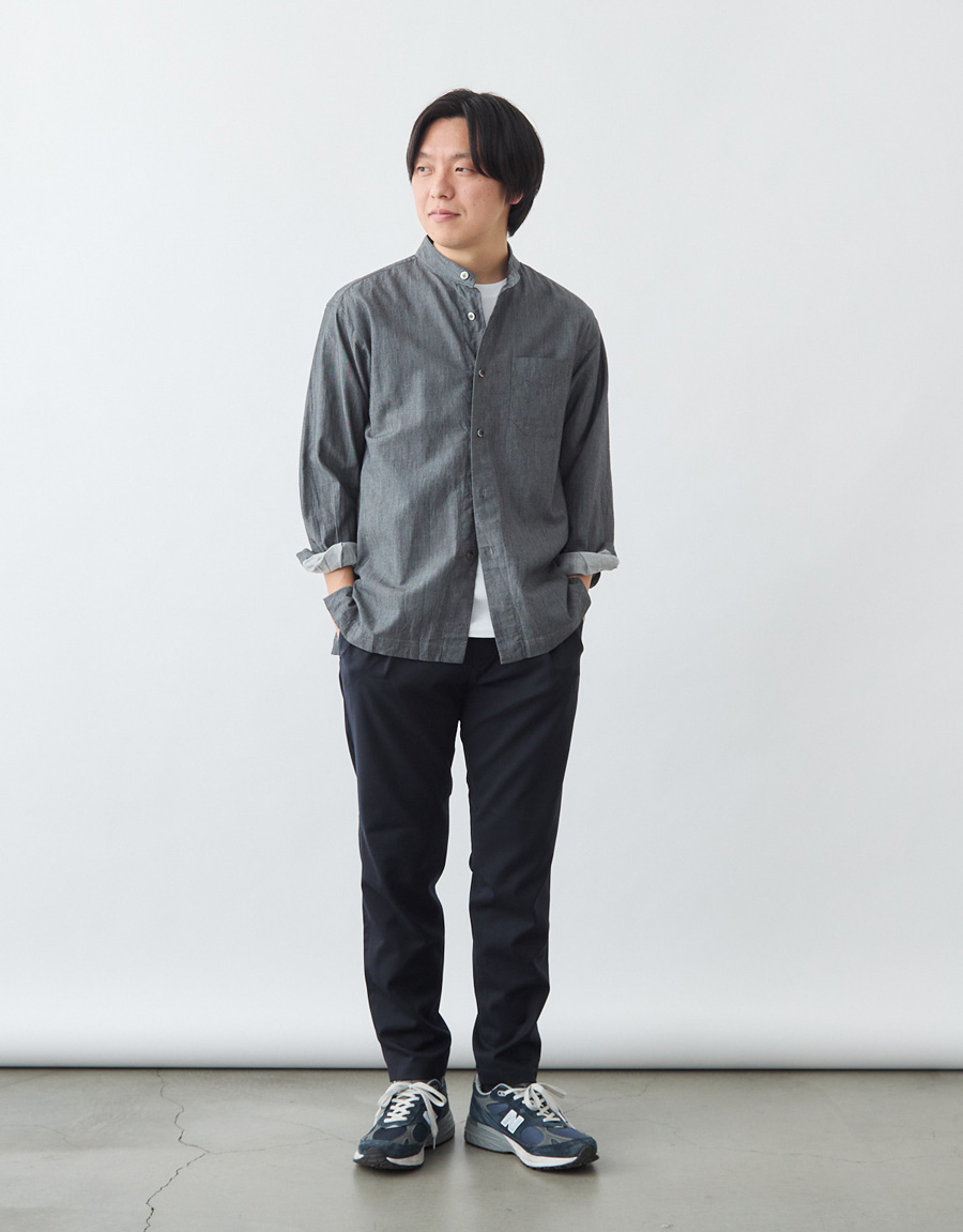 となった時に、このパンツのグレーを穿いて、一緒に買ったネイビーの「HITOYOSHIリネンシャツ」を合わせたらすごくカッコいいだろうなと思って。