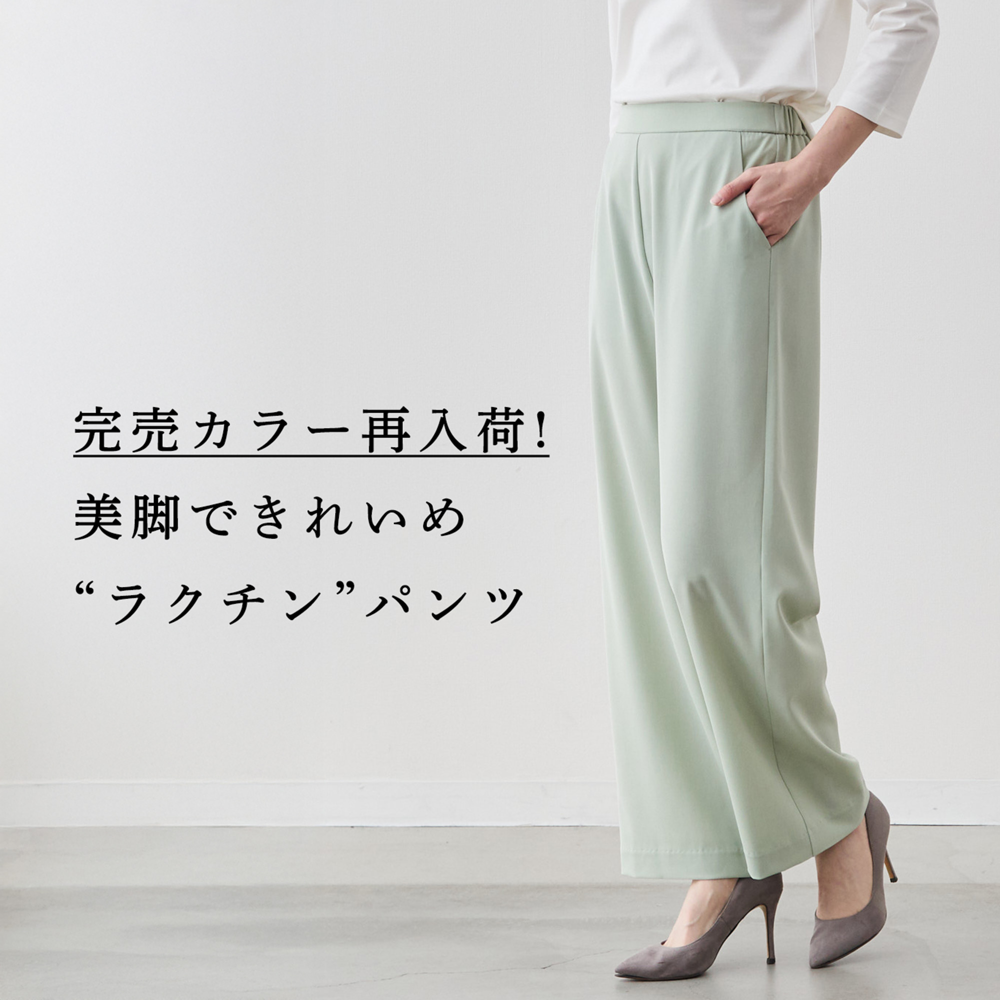 今回のリニューアルで、より美脚に進化した通称“ラクチン”パンツ。