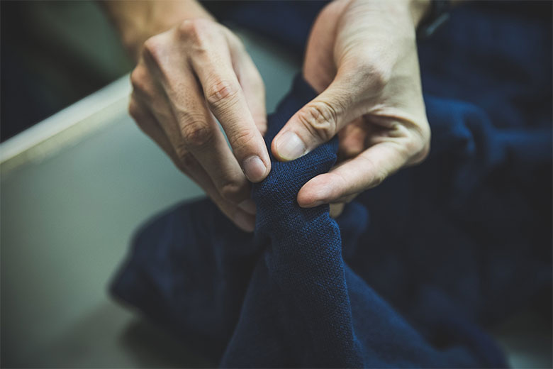 創業1955年、靴下の一大産地である兵庫県加古川市で、靴下の卸売りの会社としてスタートした工場・ワシオ株式会社。寒い季節には欠かせない、肌に当たる内側の生地が起毛した「裏起毛」の洋服や小物で先駆的存在で、代表的なアイテム「もちはだ」は、特許製法による圧倒的な暖かさで50年以上にわたって愛され続けています。