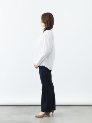 決してダボっとは見えないけれど、バストやウエスト周りが体に沿わず窮屈さがありません。ノーストレスで、着ていて気持ちの良いラインを目指しました。