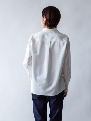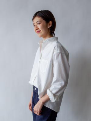 このシャツは、着こなしのテクニックも不要。年代や体型、ファッションの好みも超越して、どなたが着ても素敵に見えるように生地選びから襟の大きさ、胸元の空き具合など、細部にこだわっておつくりしました。