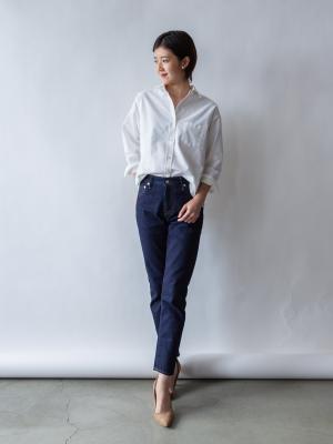 なぜなら、オックスフォードの生地にハリ感があるため、襟の立ちや、袖をまくった感じ、全体のフォルムが簡単に決まりやすいんです。
