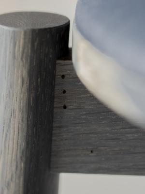 鉄媒染で染められた虫食いナラ材で作るスツールは、まさに世界でたった一つの唯一無二の一脚です。