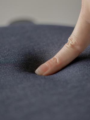 座面であるパッドには、広島県福山の「篠原テキスタイル」に眠る廃棄予定の「リサイクルポリエステルデニム」を採用。