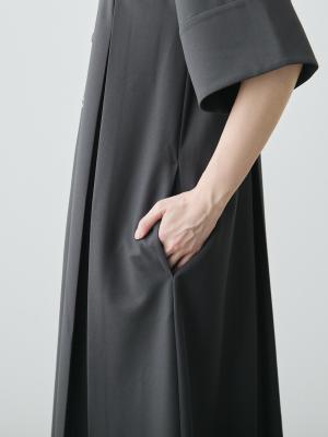 大きめの袖にインパクトがあり、ただのシャツワンピにはない、かっこよく洗練された雰囲気をもたらします。