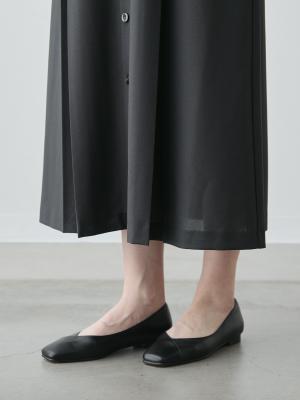 長くまっすぐに入ったプリーツが、まるで折り紙のようなこのワンピース。