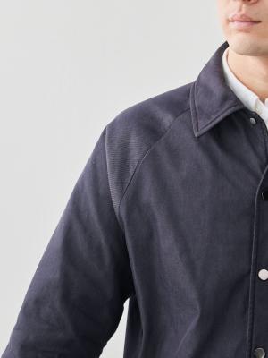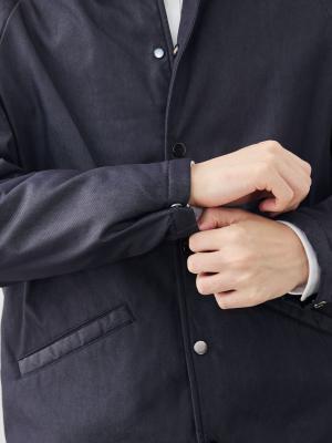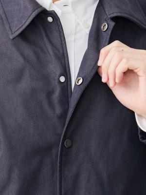 ベーススタイルには、往年の「コーチジャケット」を採用しつつ、裾ひもを排除し、艶を抑えたスナップボタンを選定。