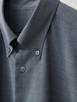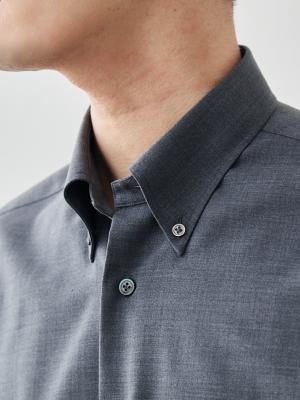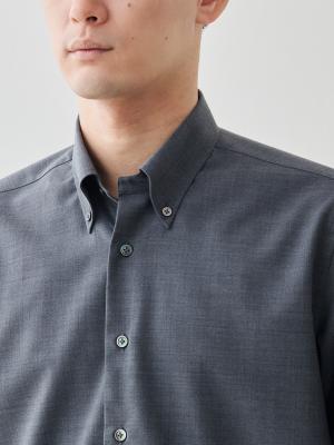襟は収まりの良いボタンダウン。