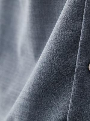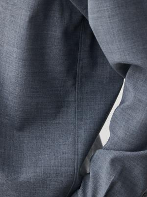 ウールとポリエステル混紡と平織り設計により、日常で発生する折りジワを抑える設計に。