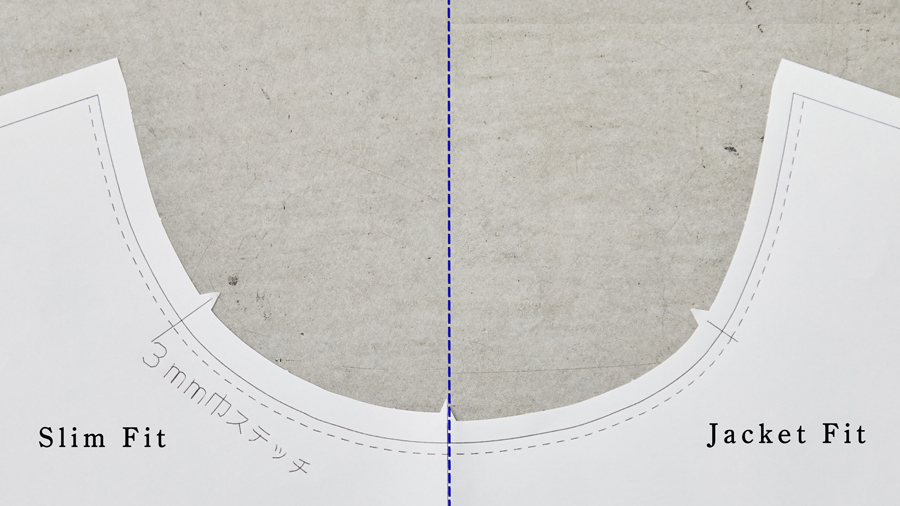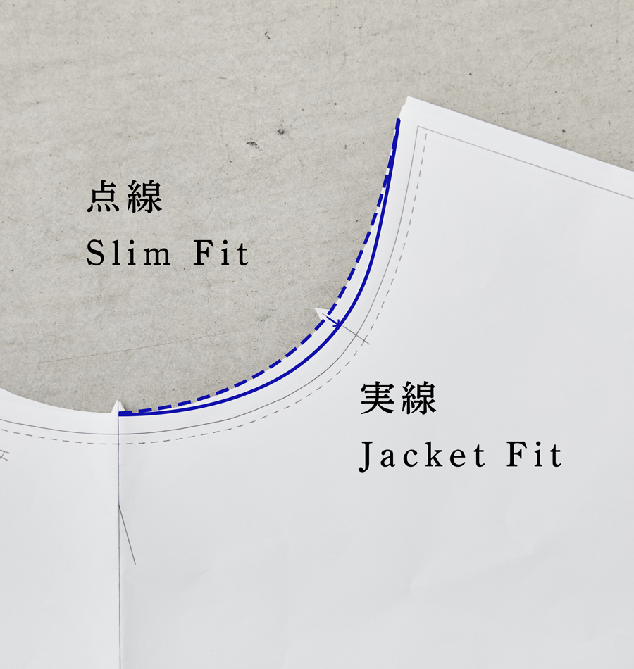 ▲Jacket Fitは洗濯後の縮みを考慮し、Slim Fitに比べて着丈を約4cm、袖丈を約2cm長く設定。