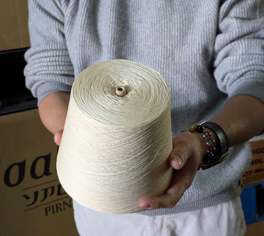 最高級ピマコットンをブレンドした細番手の糸で、森下メリヤス工場が別注したもの。限りなく丸断面になるよう糸をより合わせることで反発性が生まれます。
