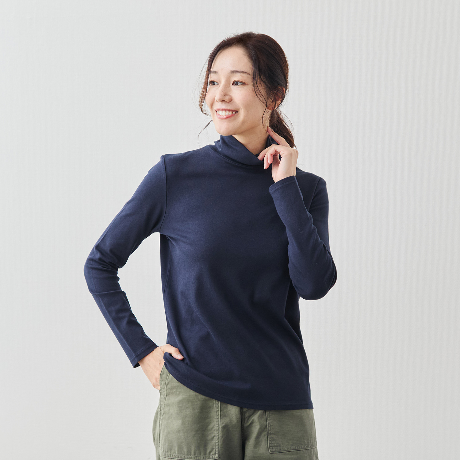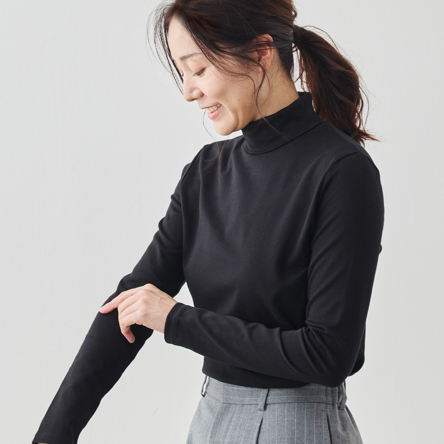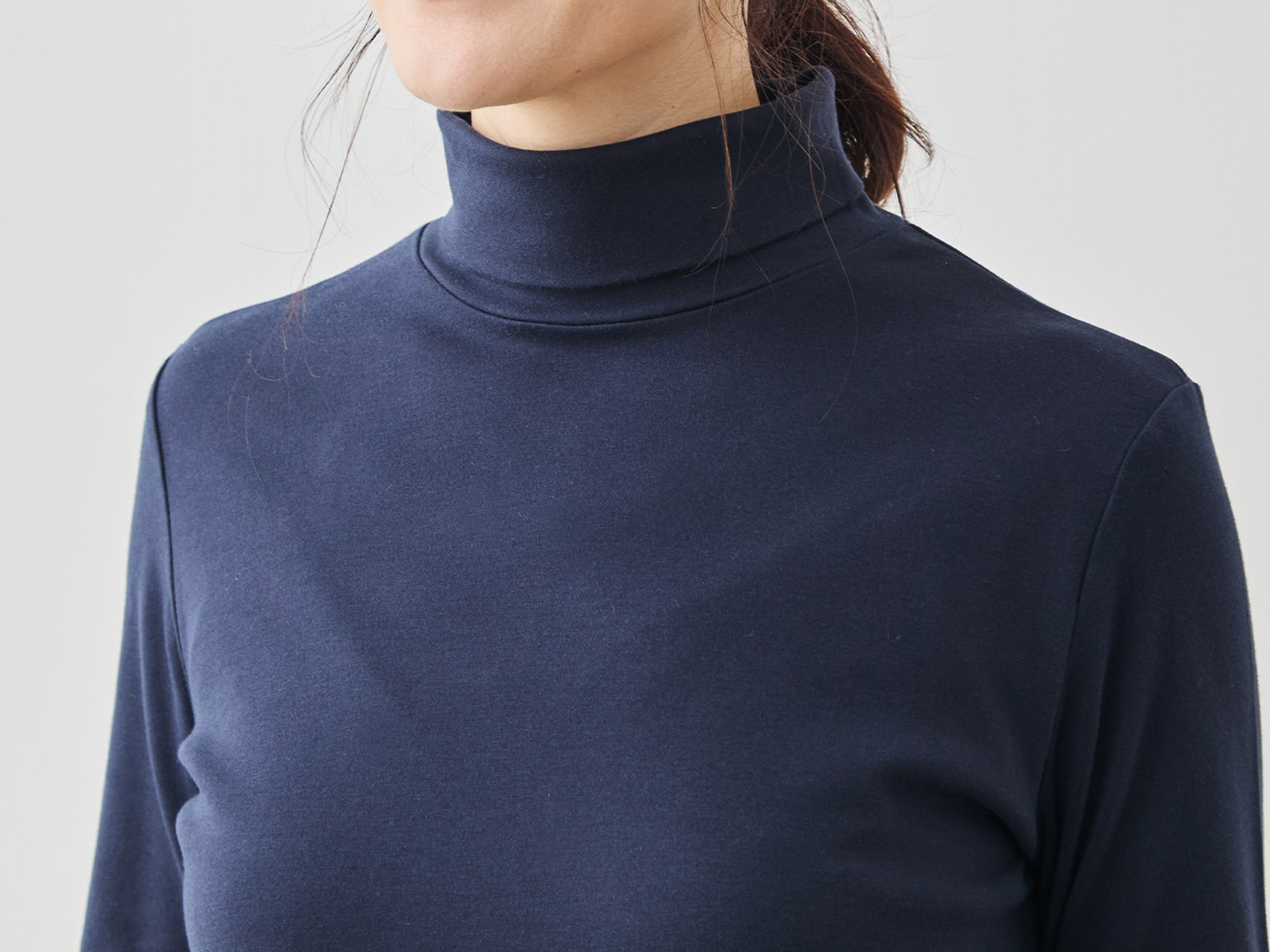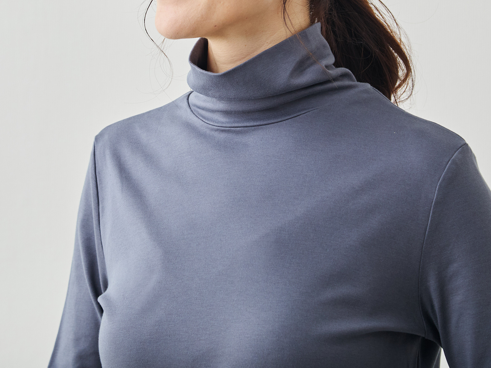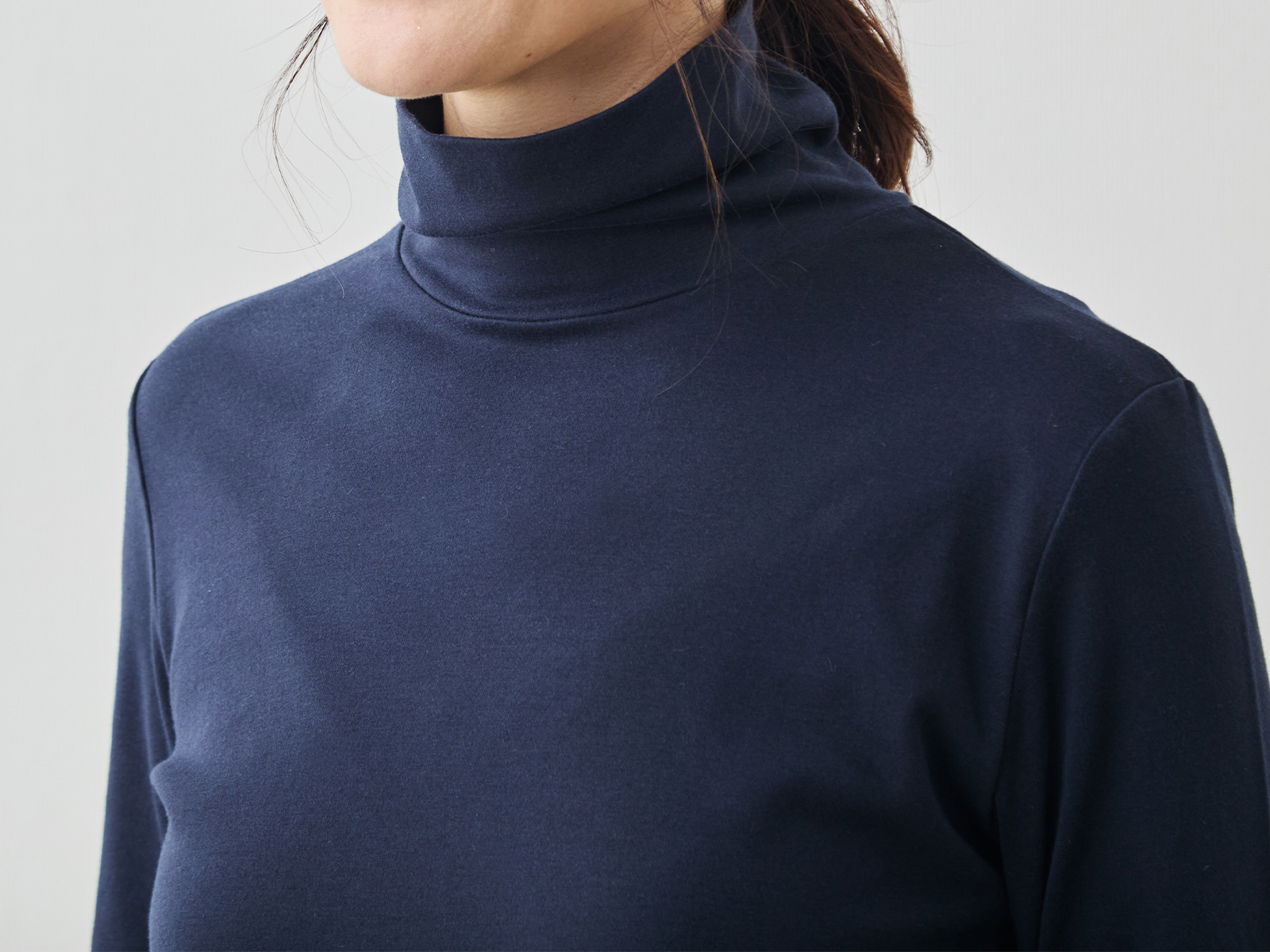 高すぎず低すぎない、ほどよい高さを目指したタートルネックは、首元が苦しかったり、ごわついてしまったりすることがなく快適です。