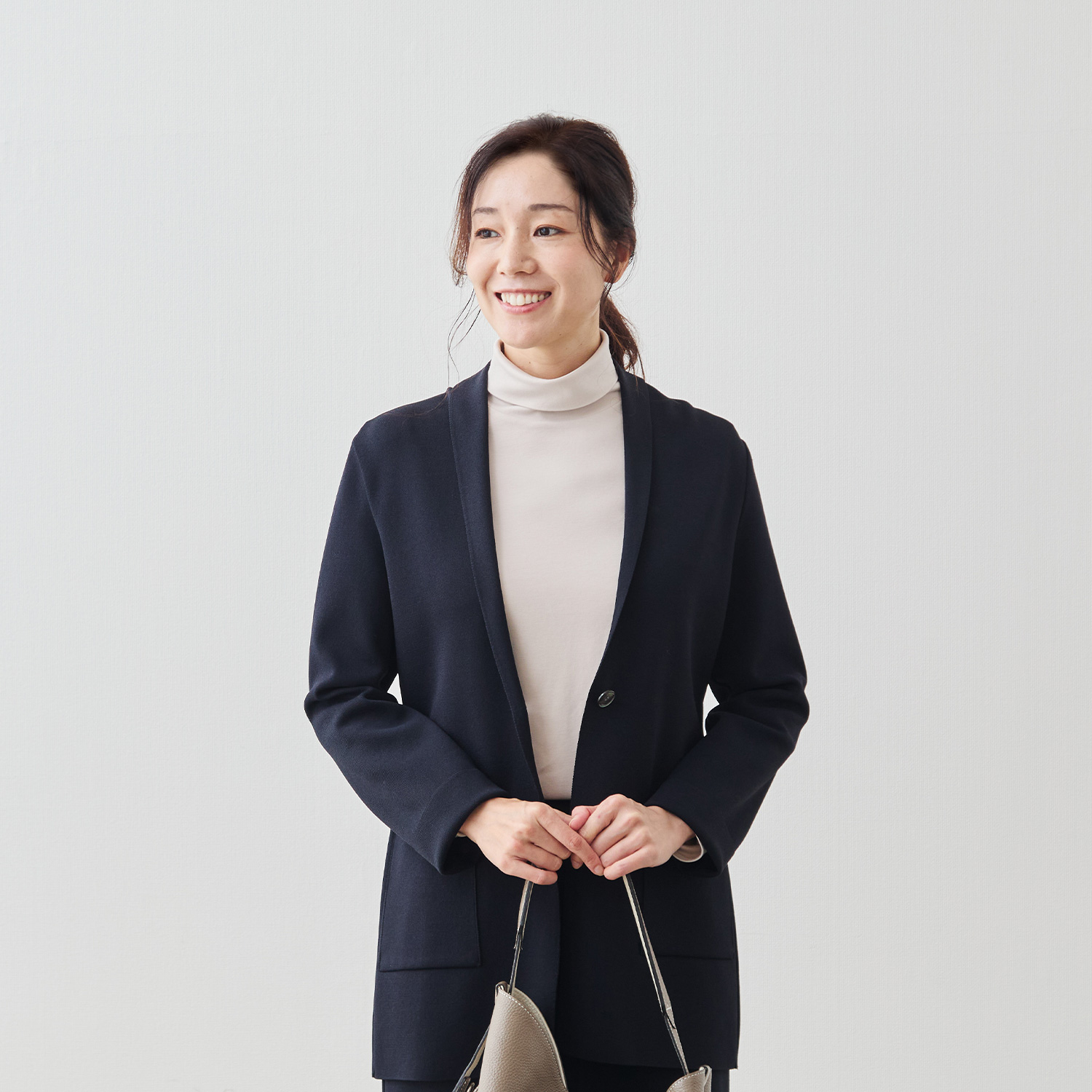 洗濯を繰り返しても型崩れ・色落ち・毛羽立ちが起きづらいためきれいさが長持ちし、ワードローブの1着として長く活躍してくれます。