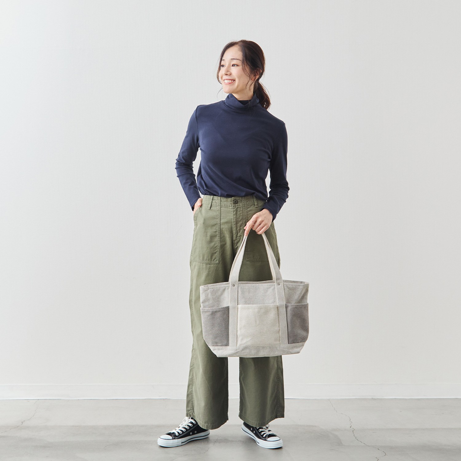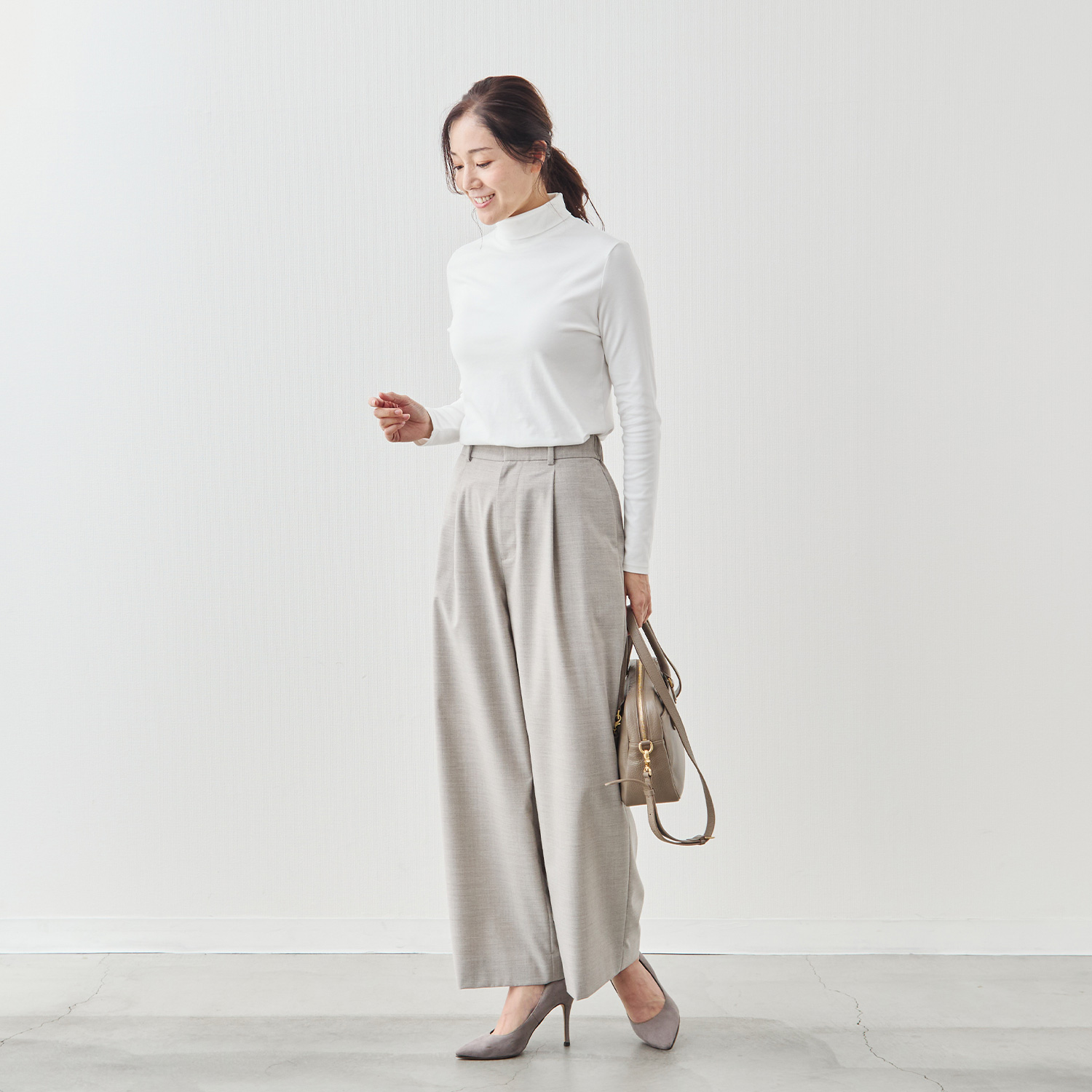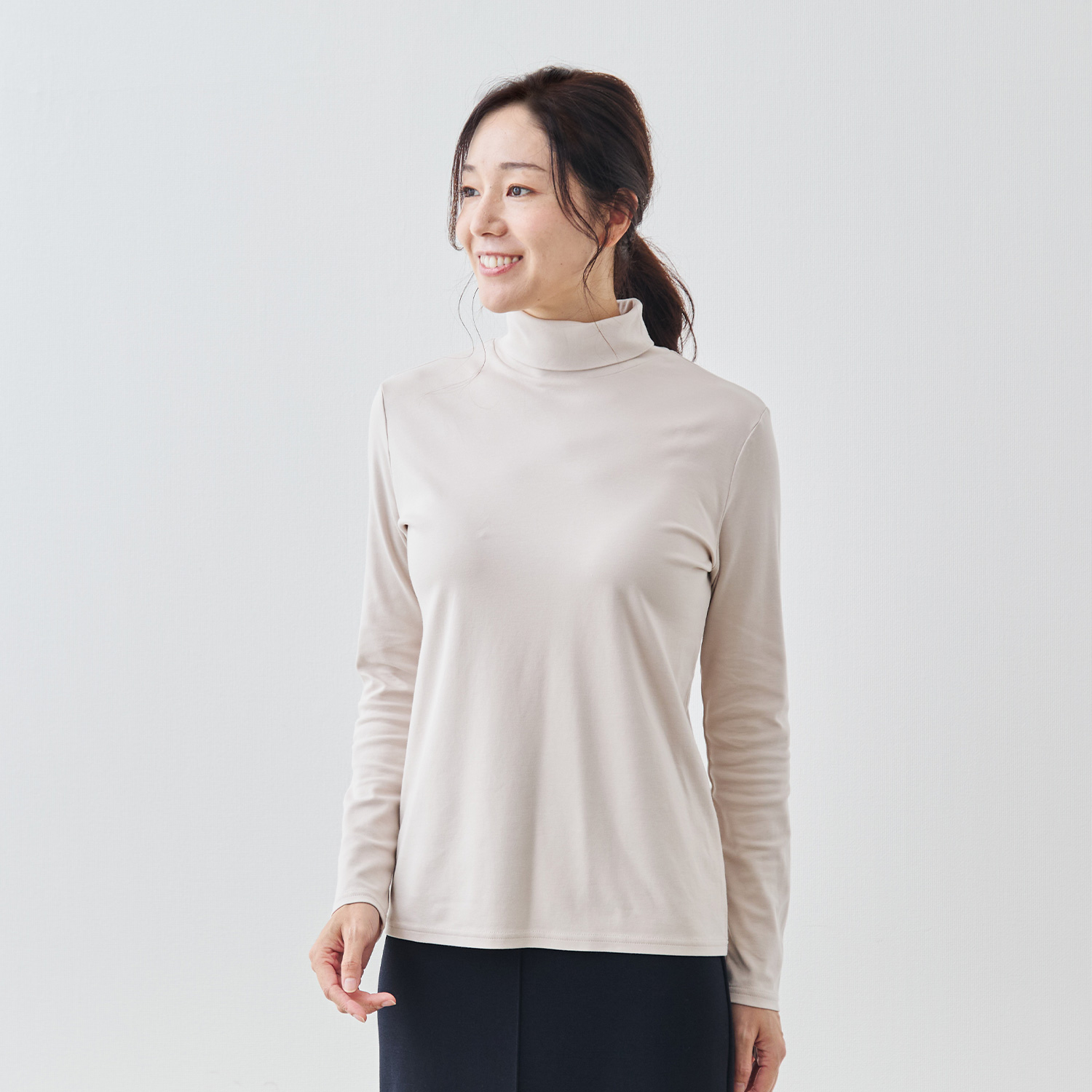 一般的にタートルネックカットソーというとインナー使いをメインとした商品が多いため、「体にピタッと沿うもの」というイメージが強いかもしれません。