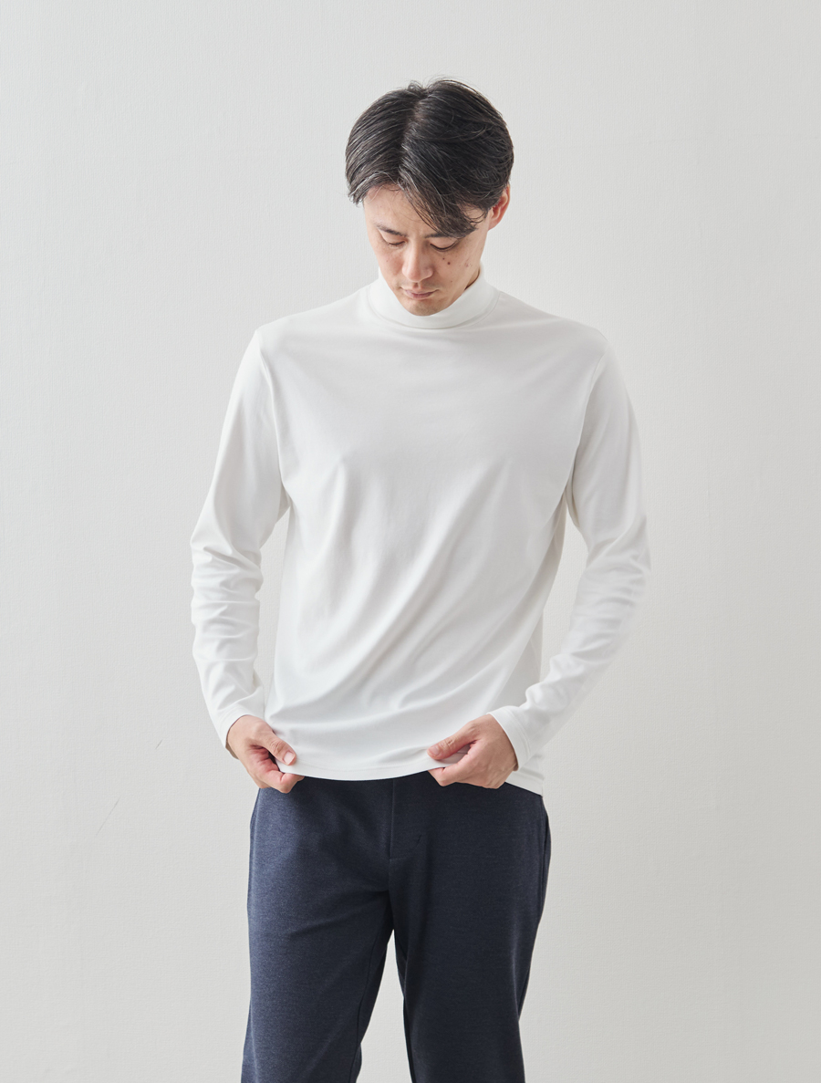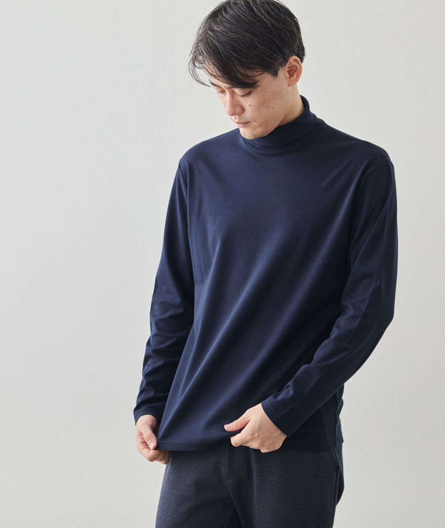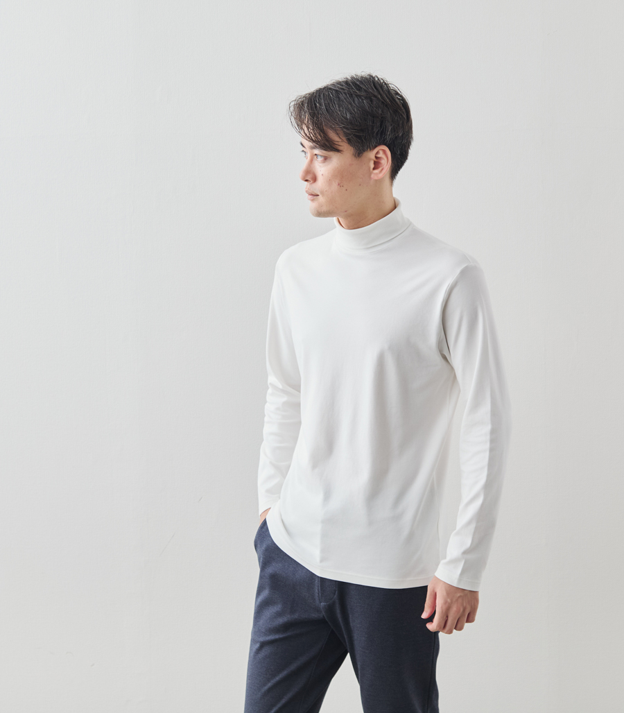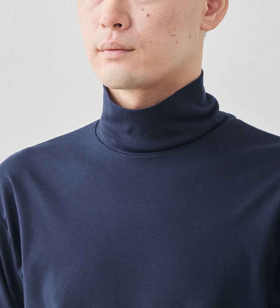 素材とその素材の魅力をぐっと引き出す紡績、加工によって完成したタートルネックです。