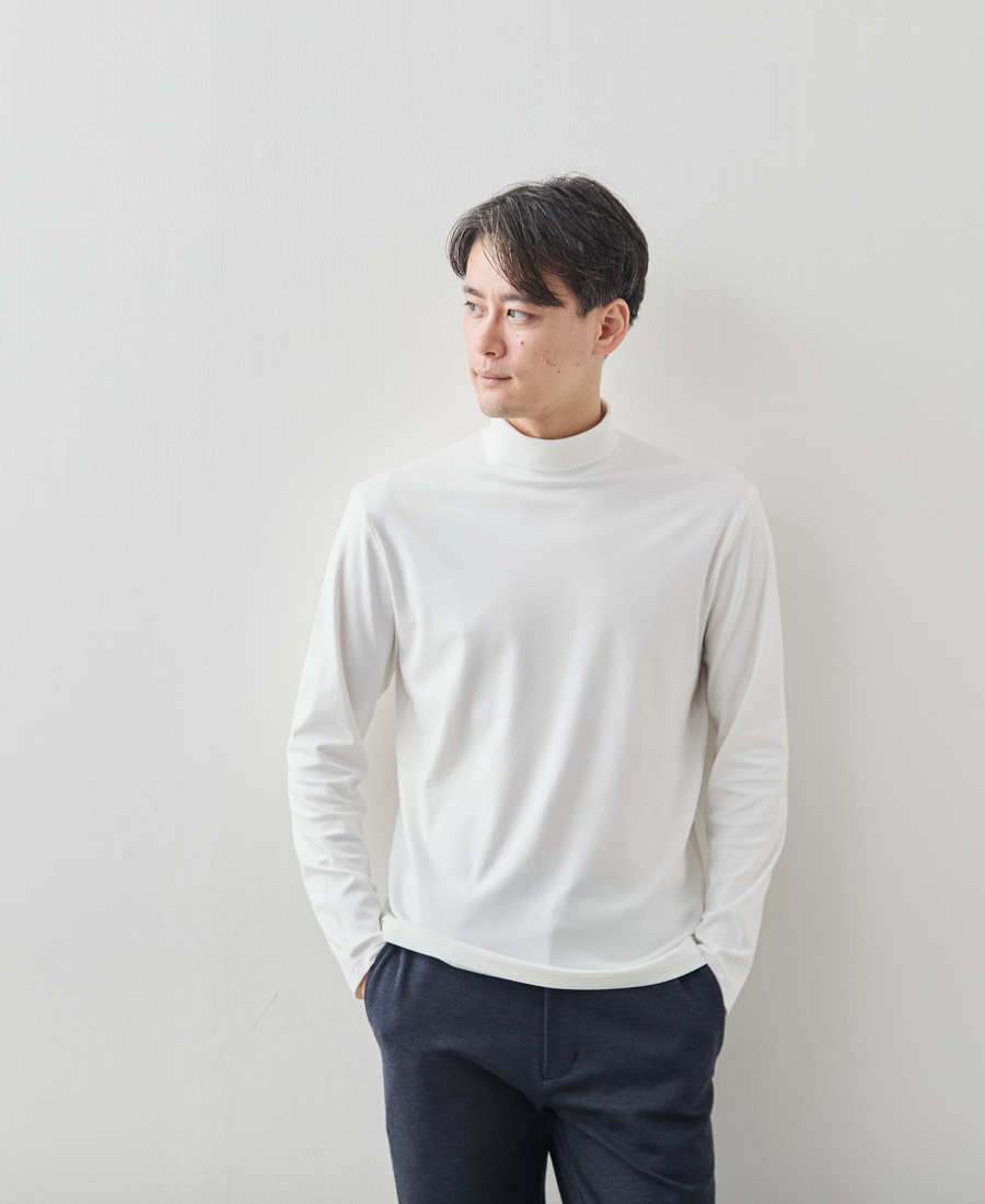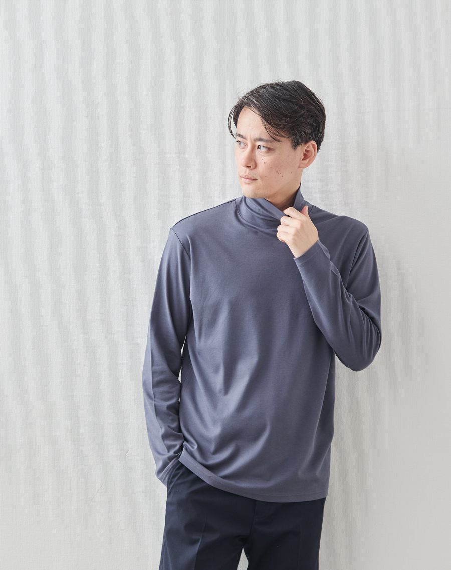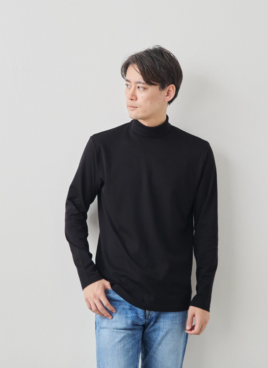 素材とその素材の魅力をぐっと引き出す紡績、加工によって完成したタートルネックです。