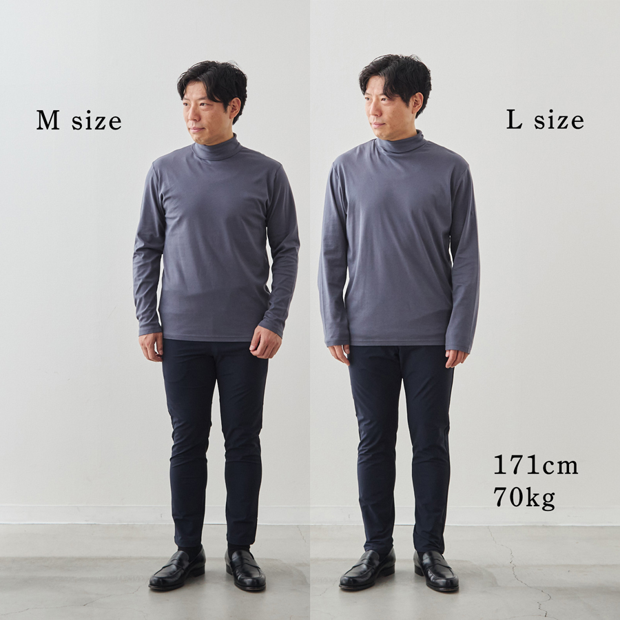 ガッシリ体型の小林はファクトリエではMサイズかLサイズで悩むことがありますが、こちらのタートルネックはMサイズでジャストサイズ。