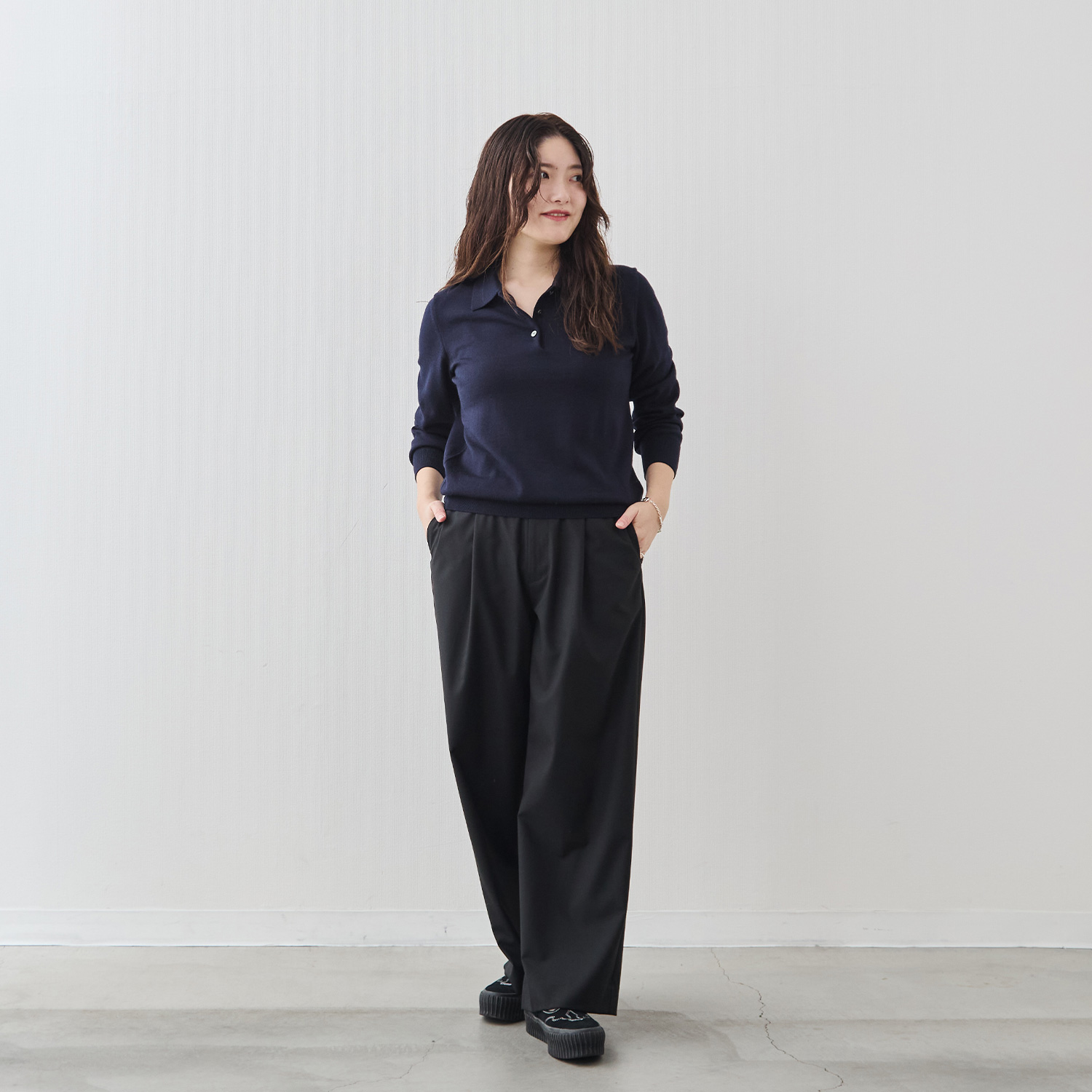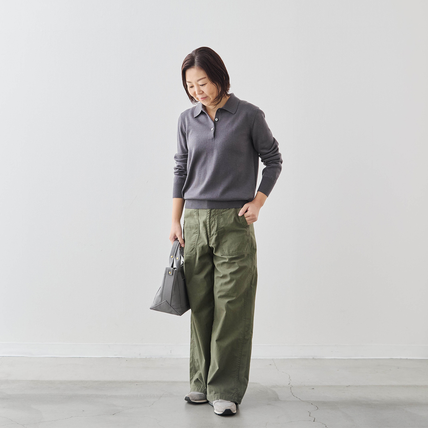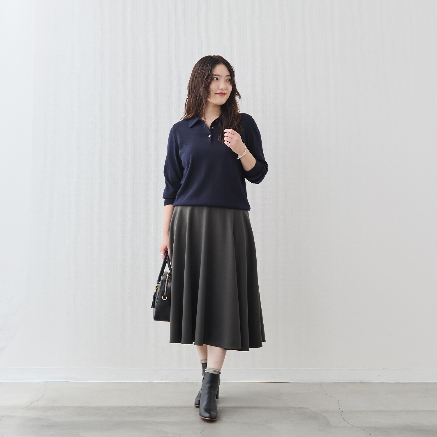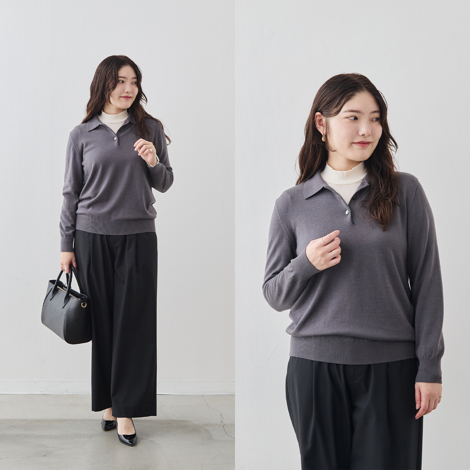 スタイリングの幅広さも、このポロニットの大きな魅力。