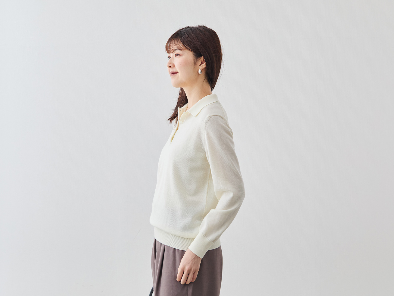 大人の女性にちょうどいい、“品と心地よさ”を両立したポロニットです。
