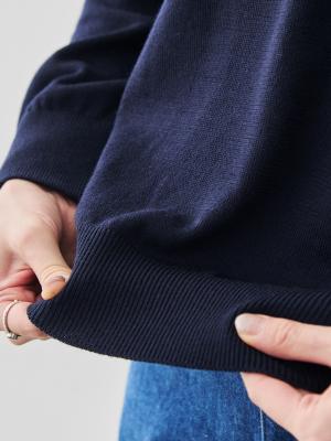 さらに、リブ仕様の裾と袖が全体をすっきりまとめてくれるため、