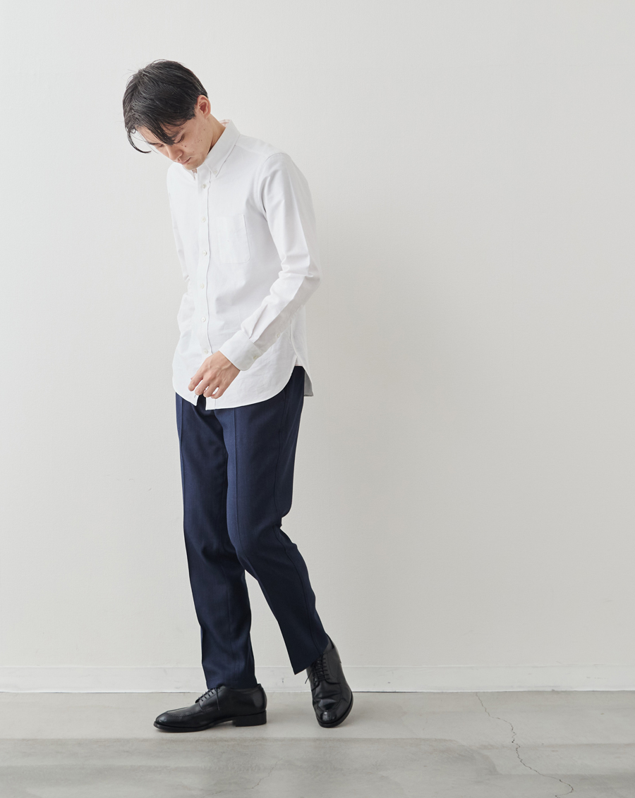 1969創業、国内最大のスラックス工場。スラックス専業メーカーならではの知識と経験を活かし、穿き心地の良さや型くずれしにくいシルエットを長年研究してきた。その結果、123という一般的なスラックスの約2倍の工程を経たスラックスが誕生した。