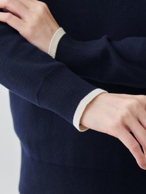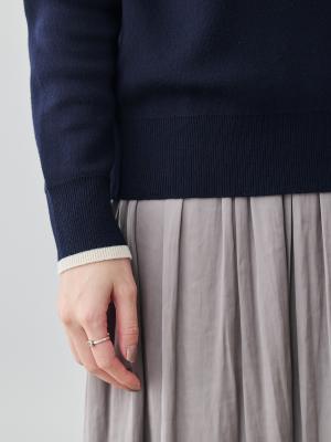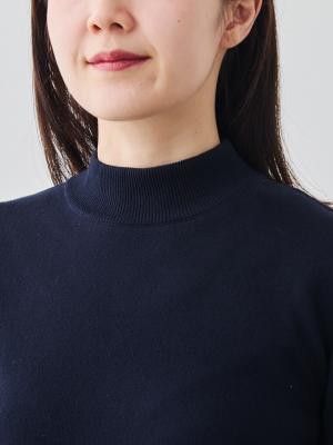タートルほど詰まりすぎず、ほどよく首に沿って立ち上がるネックラインが、顔まわりにすっきりとした印象を添えながら、寒い日もしっかり首を暖めてくれます。