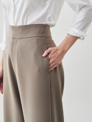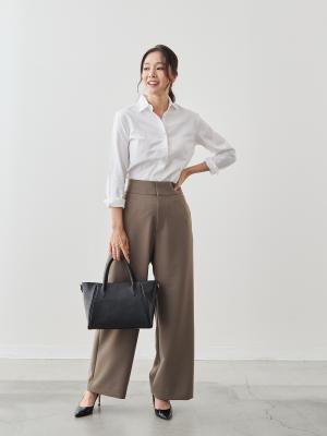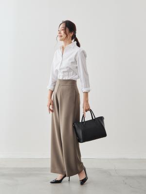 「見た目きちんと、穿き心地リラックス、ケアは時短」を叶える、大人のためのワイドパンツです。