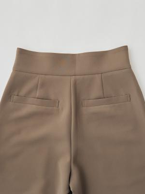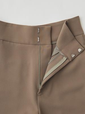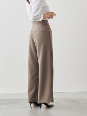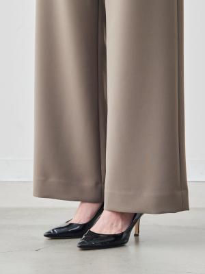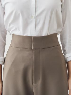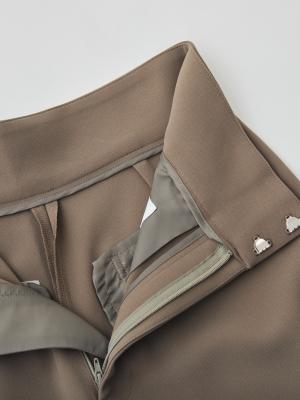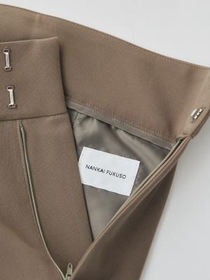 タックをあえて入れず、腰まわりのボリュームを抑えることで、すっきりと縦に長いラインを強調。