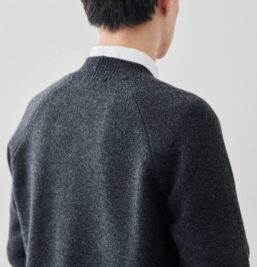 過度な装飾はせず、編み目そのものの美しさで勝負した一着です。長く着ていただくことで、より体に馴染んでくる感覚を楽しんでいただければと思います。」