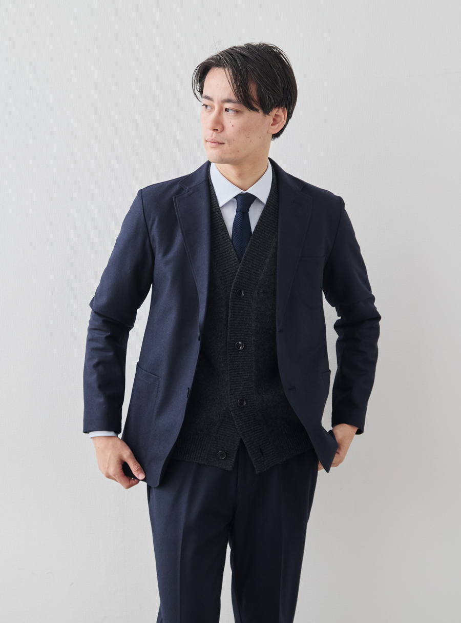 ※ジャケットがタイトフィットの場合は肩回りが窮屈になる場合もございます。