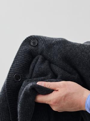 そんな40代以上の男性ならではの悩みに対し、新潟県五泉市のニット工場「川島」と導き出した答えがこの「カシミヤブレンド Premium ローゲージ・カーディガン」です。