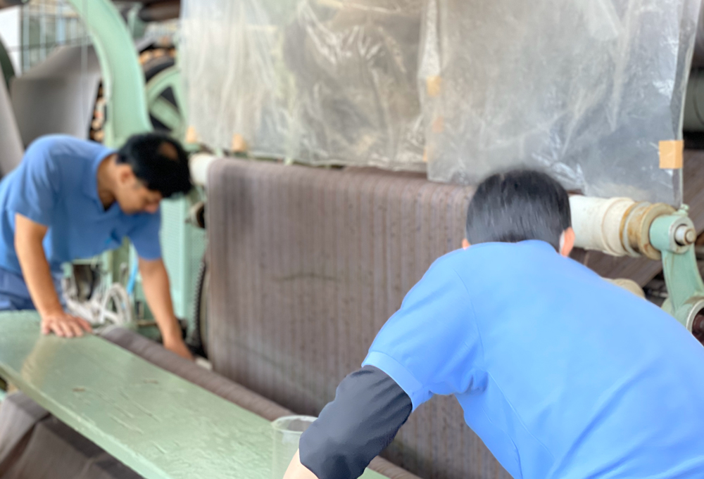 ゆっくりと丁寧に織り上げます。そのため深喜毛織の製品は柔らかく、滑らかな肌触りを実現し、長く愛用いただくことに繋がっています。