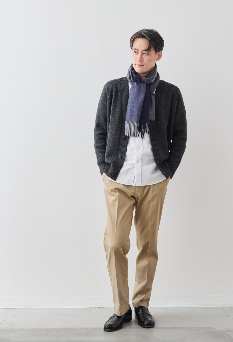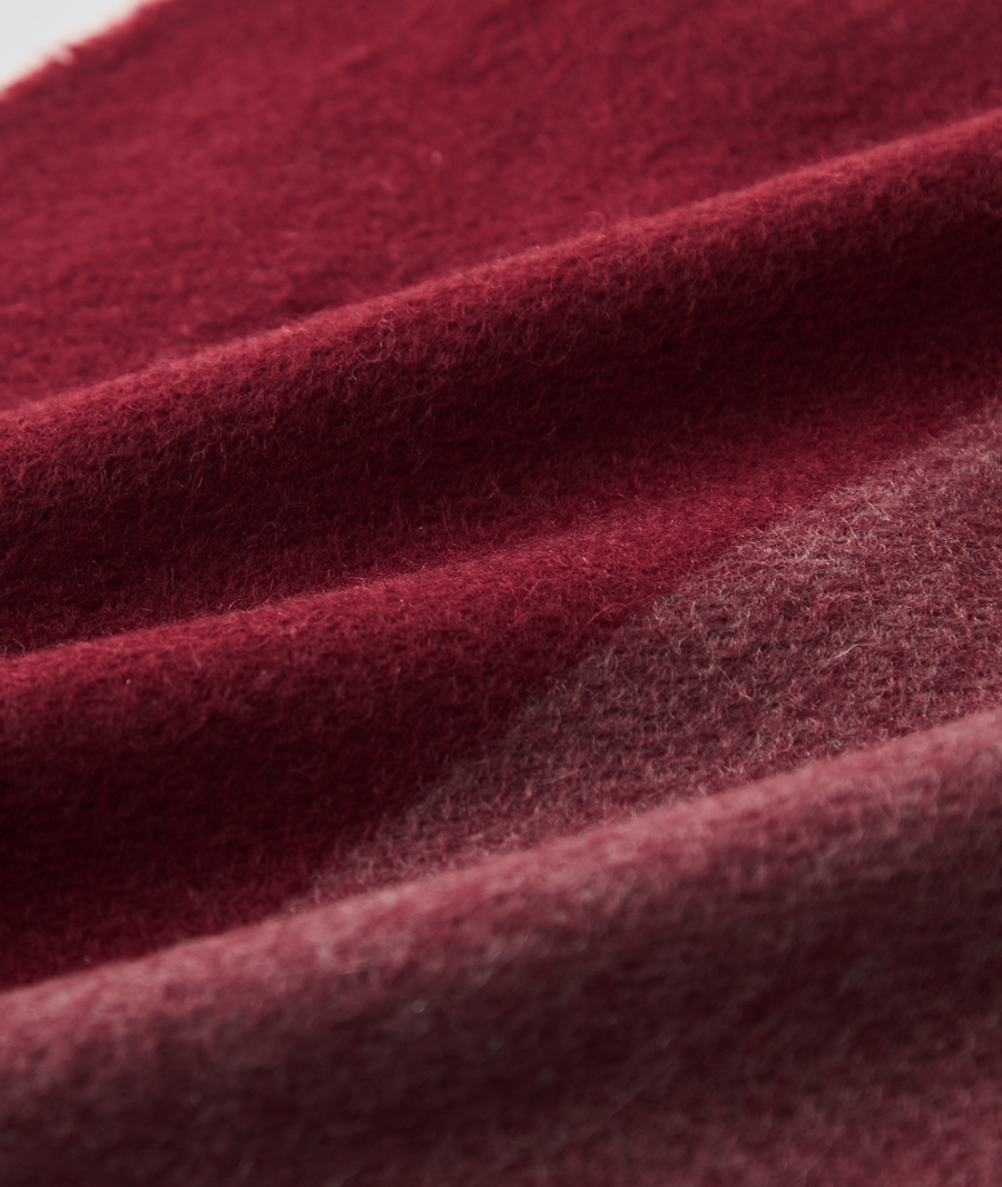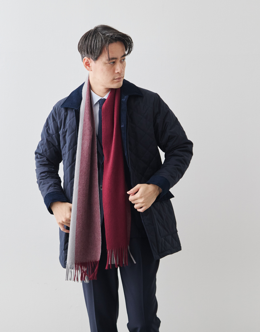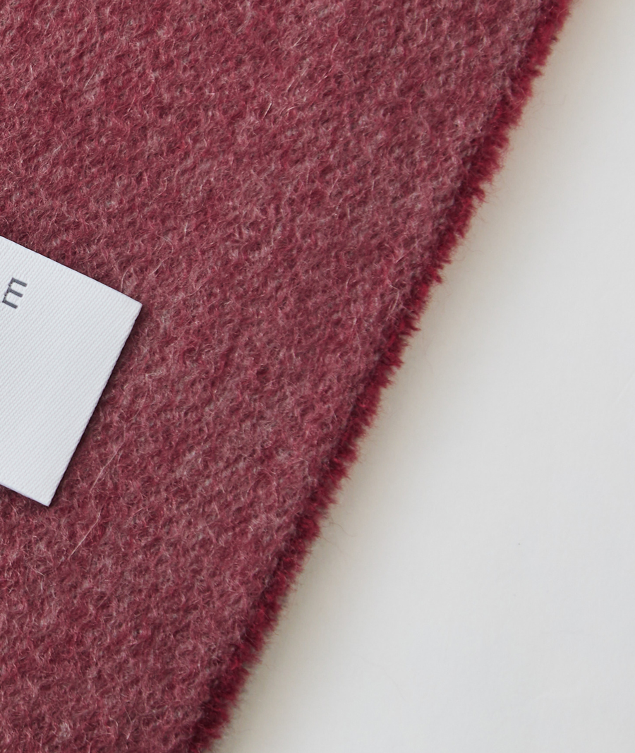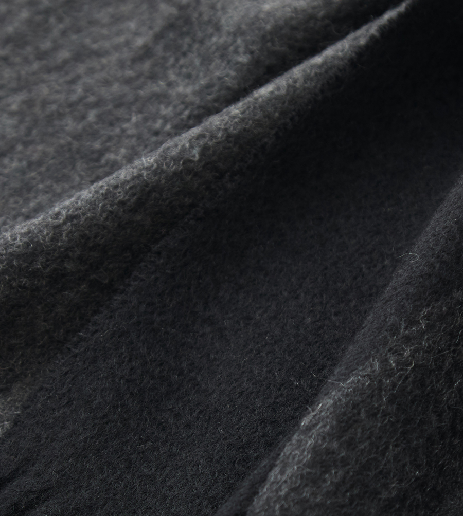 このこだわりは、織物のため目付が重いことからも明らかです。また後述するとおり、製造工程の過程でカシミヤがロスしていく量も多く、このぜいたくな使い方が、深喜毛織の製品を他社と一線を画すものにしています。
